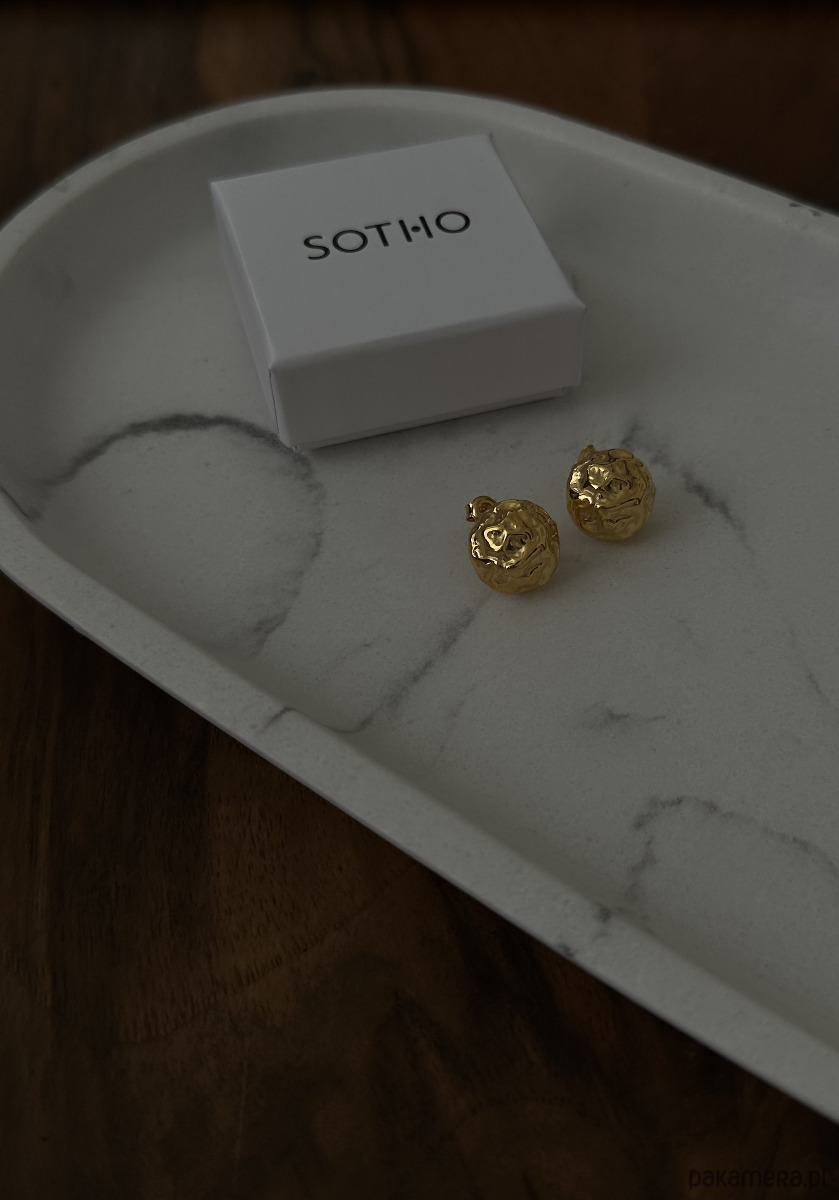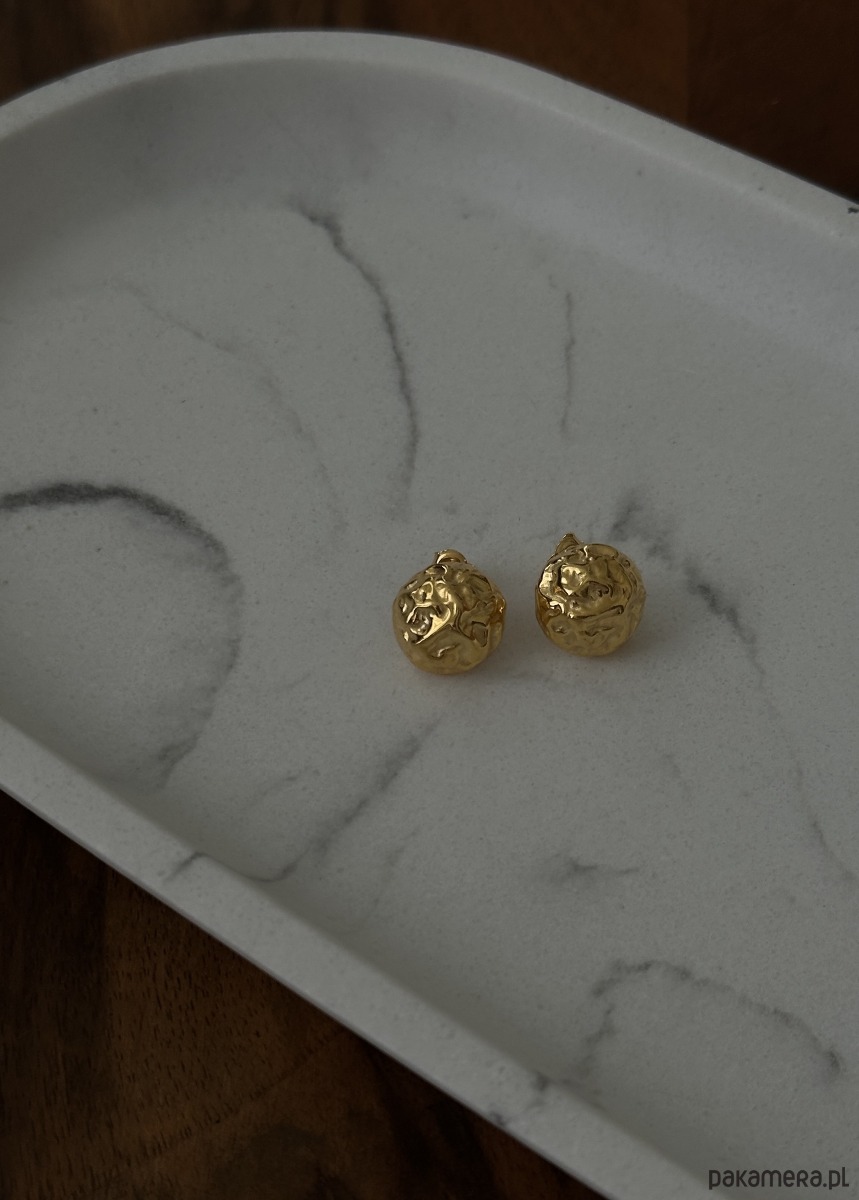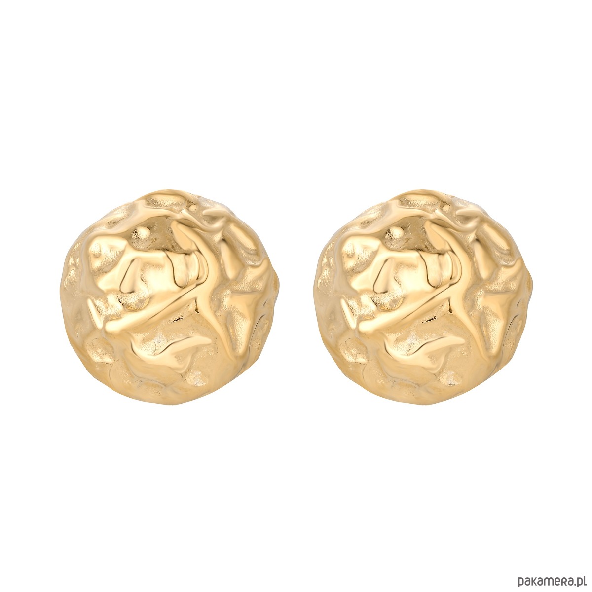 Złote kolczyki duże gniecione przestrzenne koła. Całość wykonana ze srebra 925 powlekanego 24 karatowym żółtym złotem. Zapinane na sztyft. Kolczyki posiadają zapięcia (baranki).
