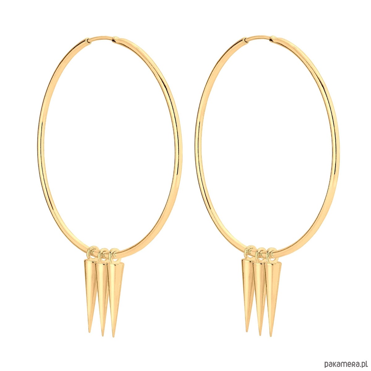 Złote kolczyki duże koła z kłami. Całość wykonana ze srebra 925 powlekanego 24 karatowym żółtym złotem.