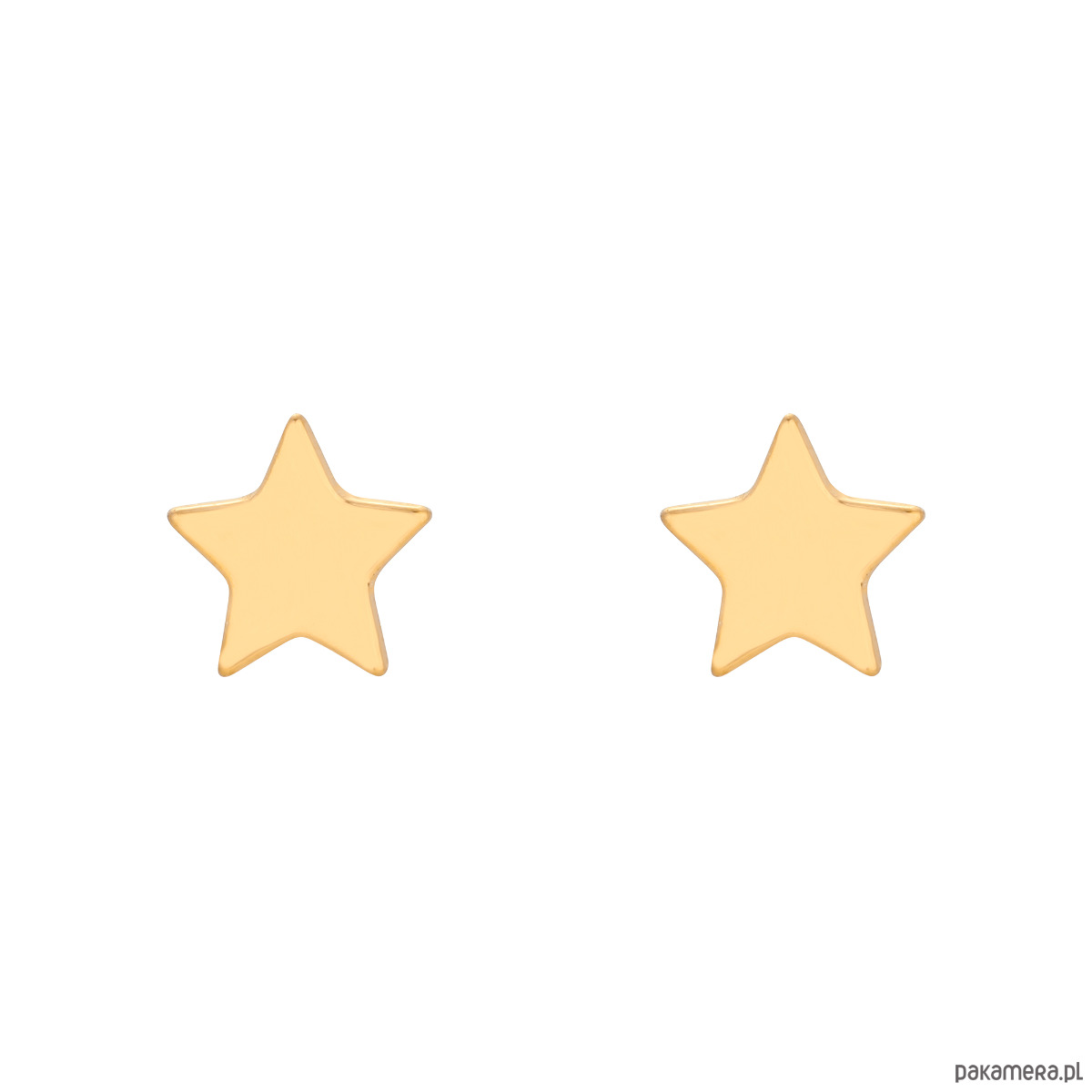 Złote kolczyki gwiazdki. Całość wykonana ze srebra 925 powlekanego 24 karatowym żółtym złotem. Zapinane na sztyft. Kolczyki posiadają zapięcia (baranki).