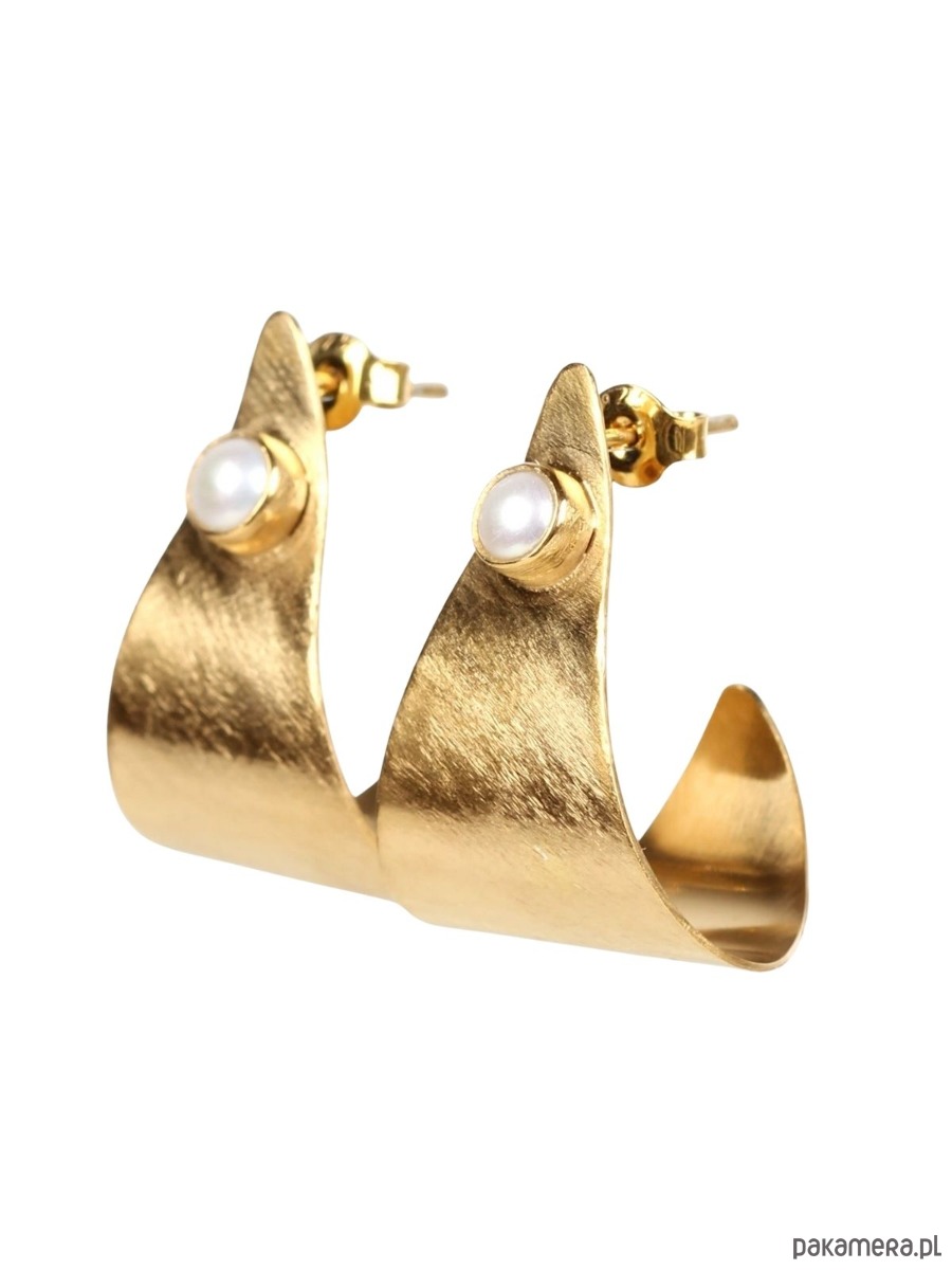 Ręcznie wykonane kolczyki ze srebra pokrytego 24 karatowym złotem z naturalnymi perłami.