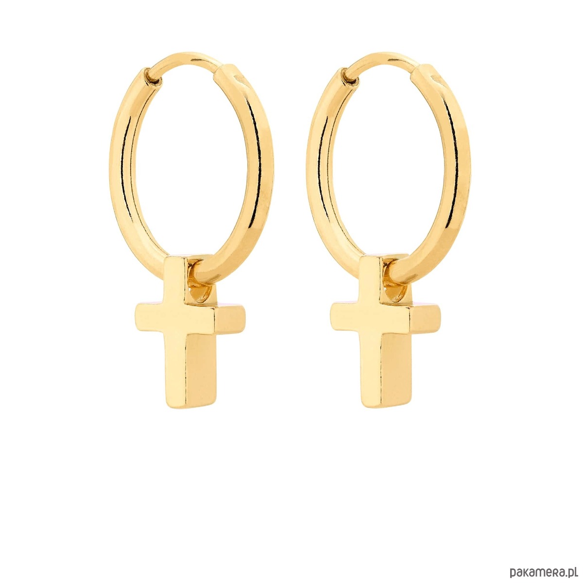 Małe złote kolczyki klasyczne koła zdobione krzyżykami. Całość wykonana ze srebra 925 powlekanego 24 karatowym żółtym złotem.