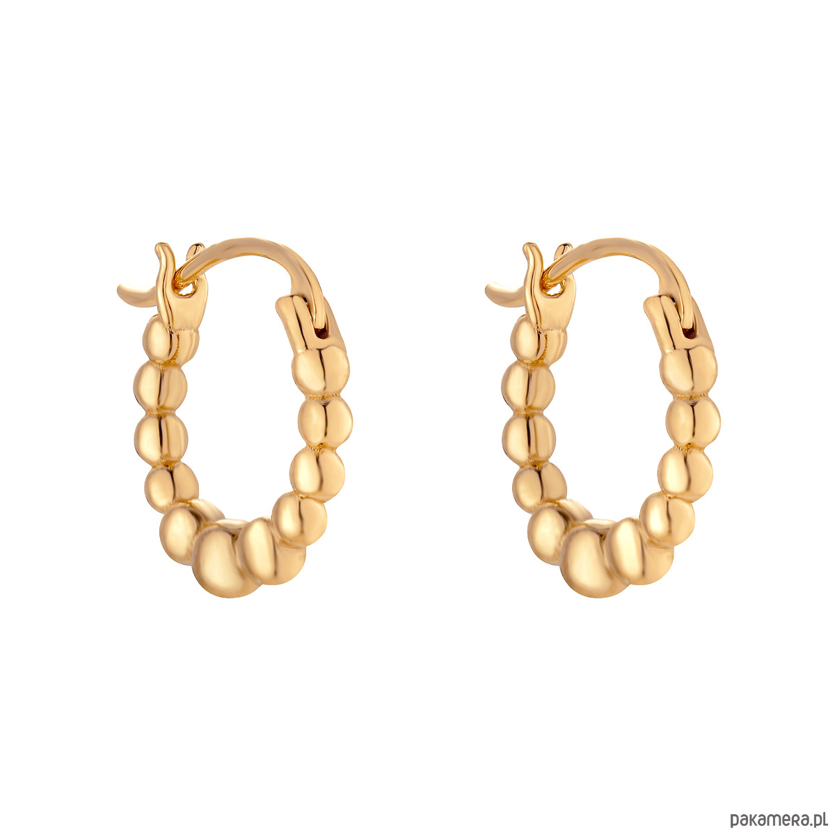 Złote kolczyki koła z kuleczek. Całość wykonana ze srebra 925 powlekanego 24 karatowym żółtym złotem.