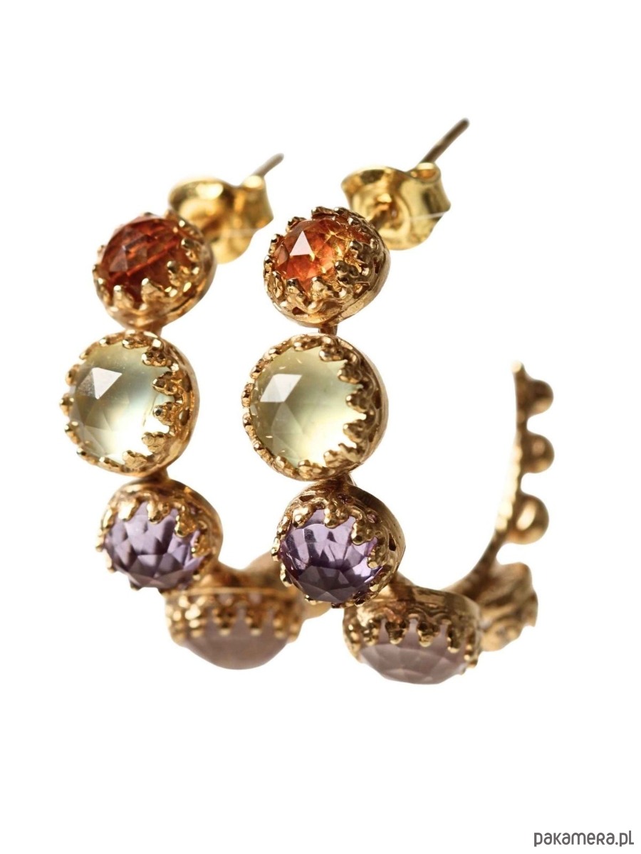 Złote kolczyki kółka z kamieniami szlachetnymi