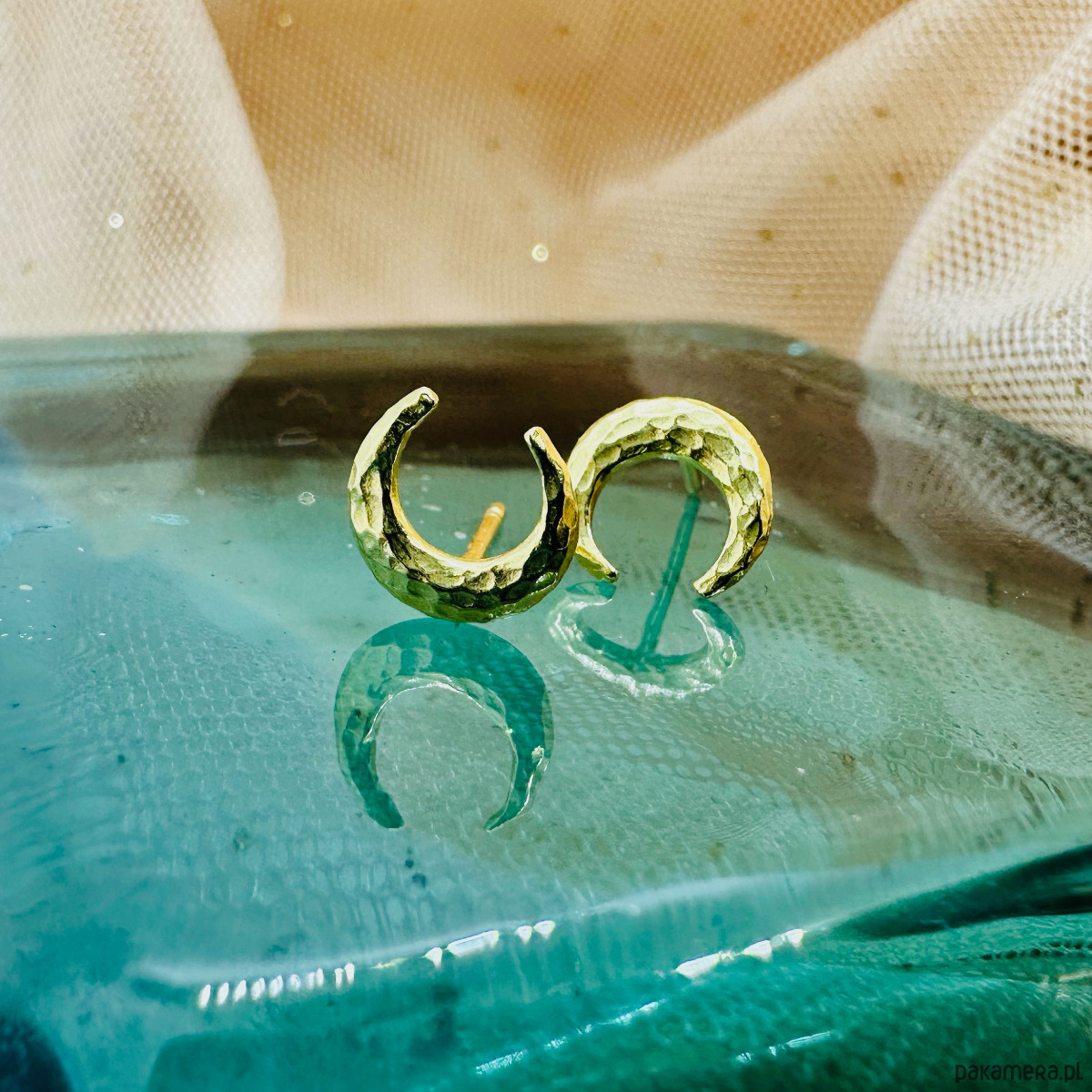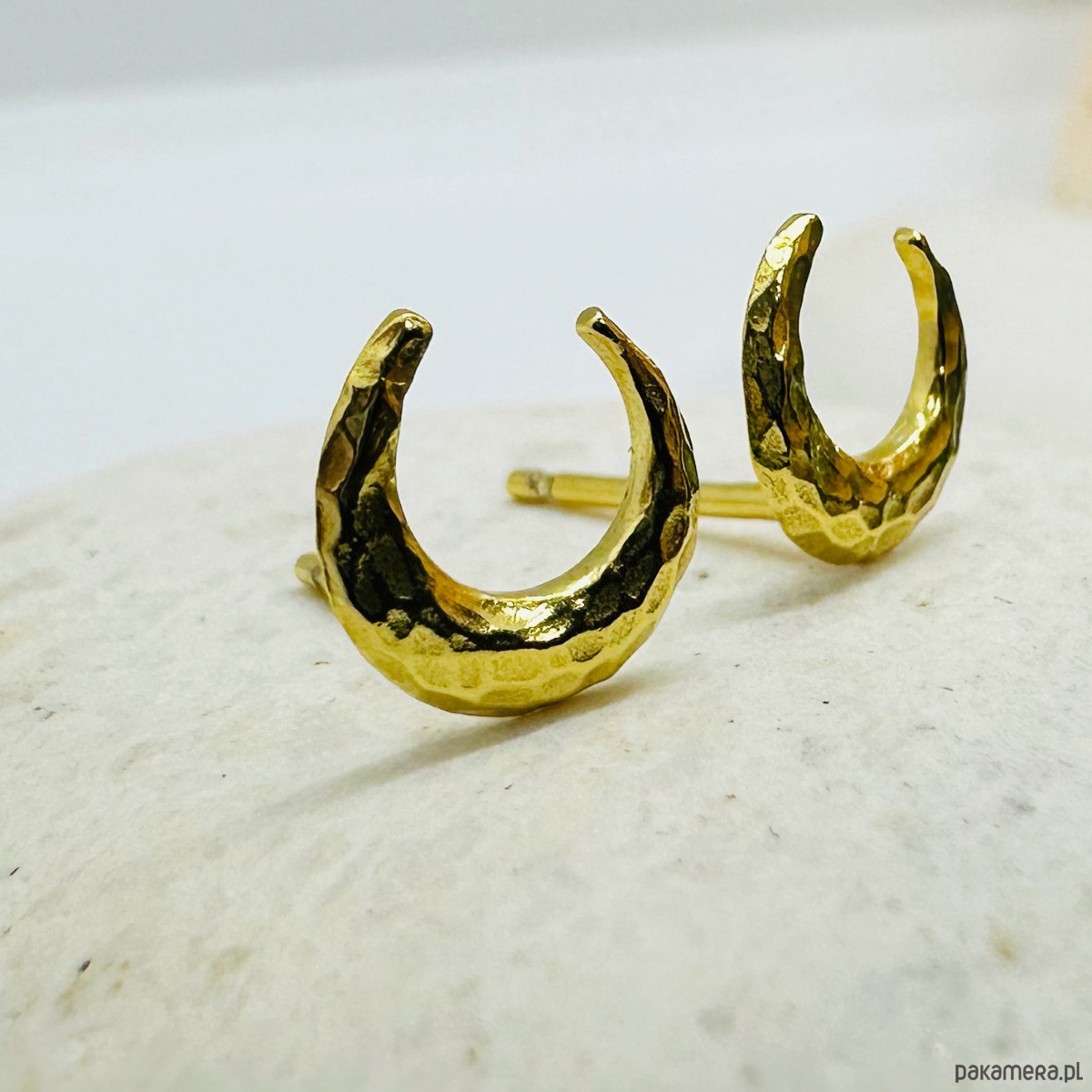 Złote kolczyki księżyce, sztyfty księżyc