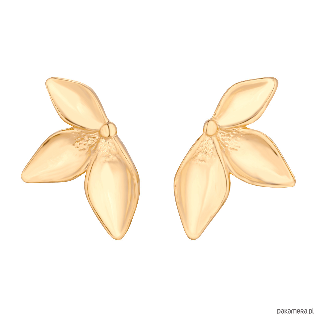 Złote kolczyki kwiatki. Całość wykonana ze srebra 925 powlekanego 24 karatowym żółtym złotem. Zapinane na sztyft. Kolczyki posiadają zapięcia (baranki).