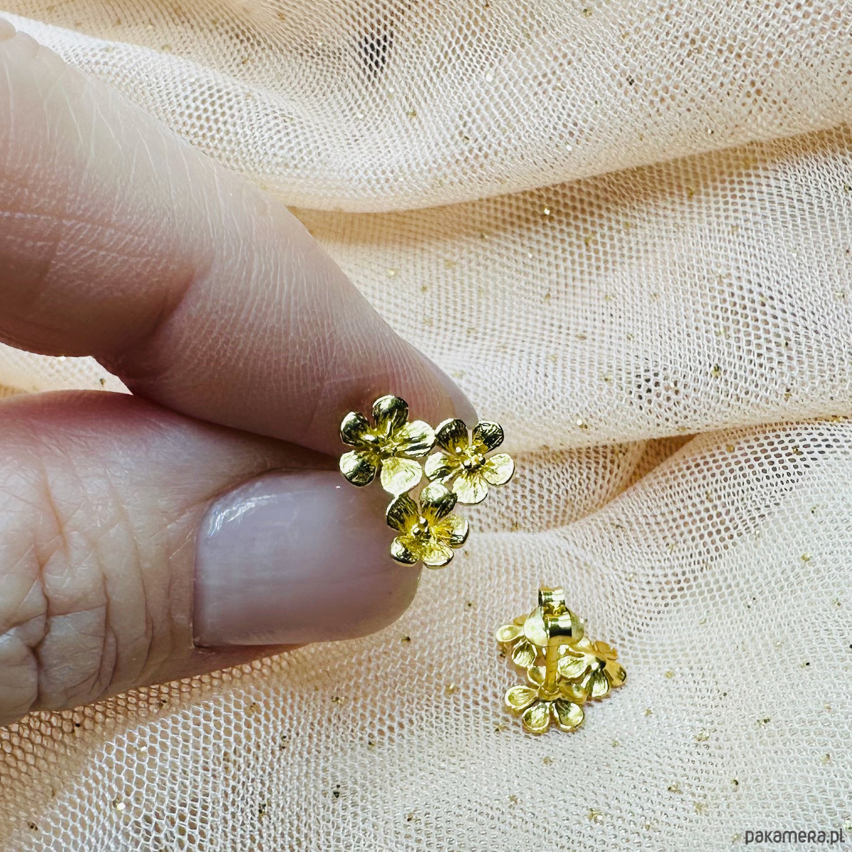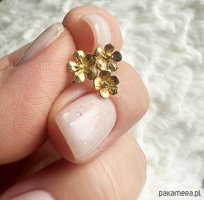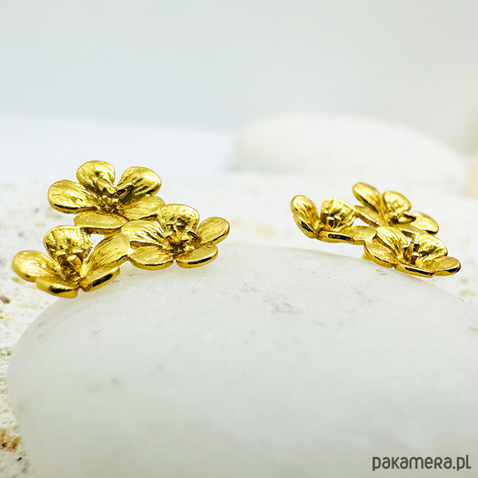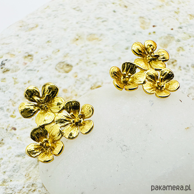 Złote kolczyki kwiaty, eleganckie sztyfty kwiatki