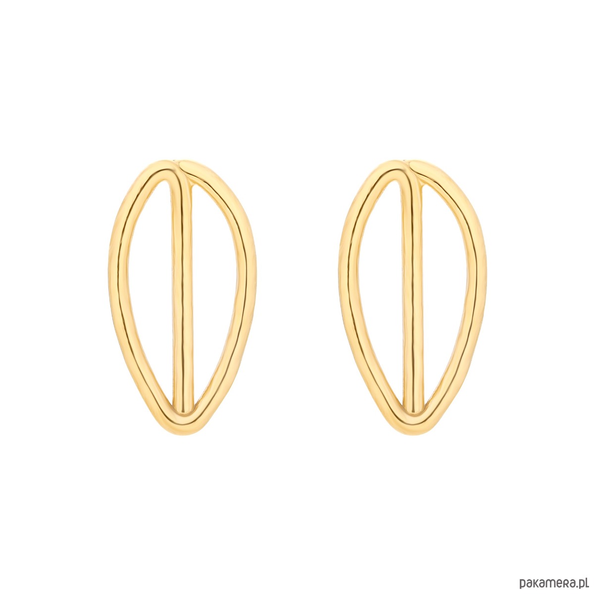 Złote kolczyki listeczki. Całość wykonana ze srebra 925 powlekanego 18 karatowym żółtym złotem. Zapinane na sztyft. Kolczyki posiadają zapięcia (baranki).