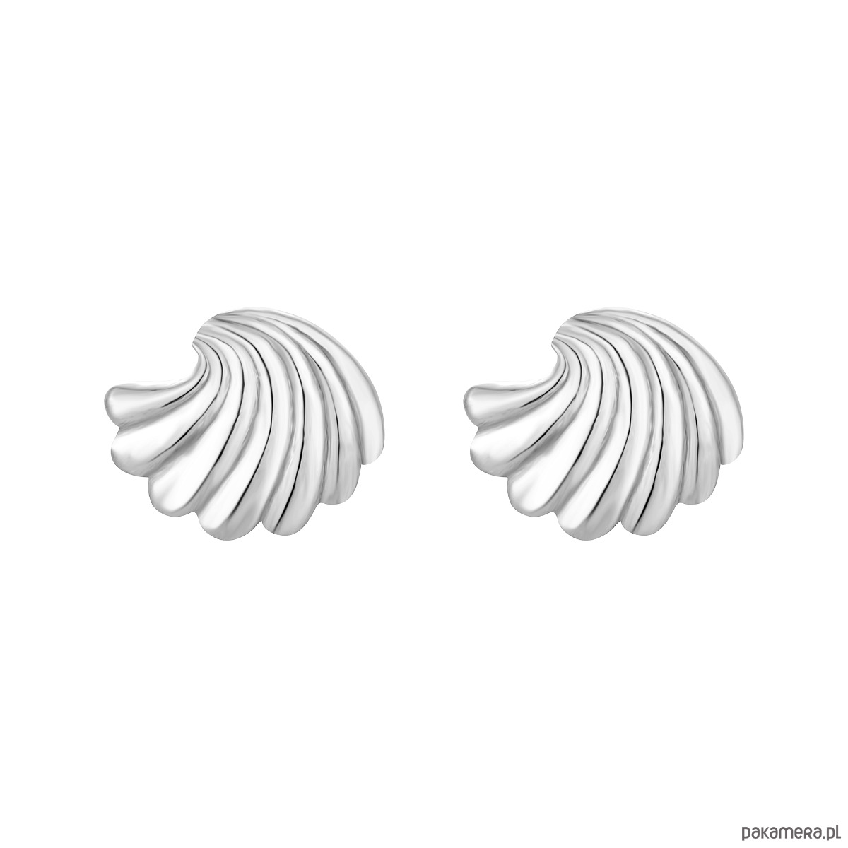 Srebrne kolczyki muszelki. Całość wykonana ze srebra 925. Zapinane na sztyft. Kolczyki posiadają zapięcia (baranki).