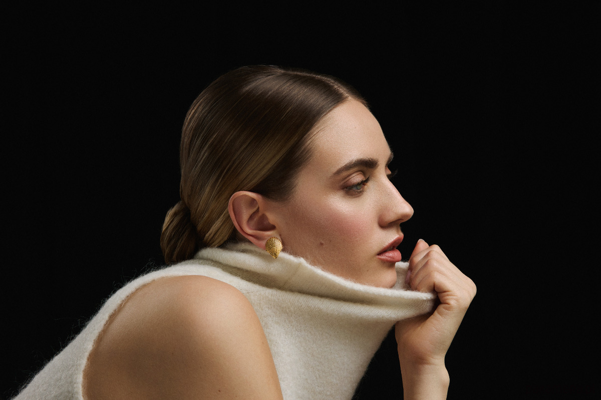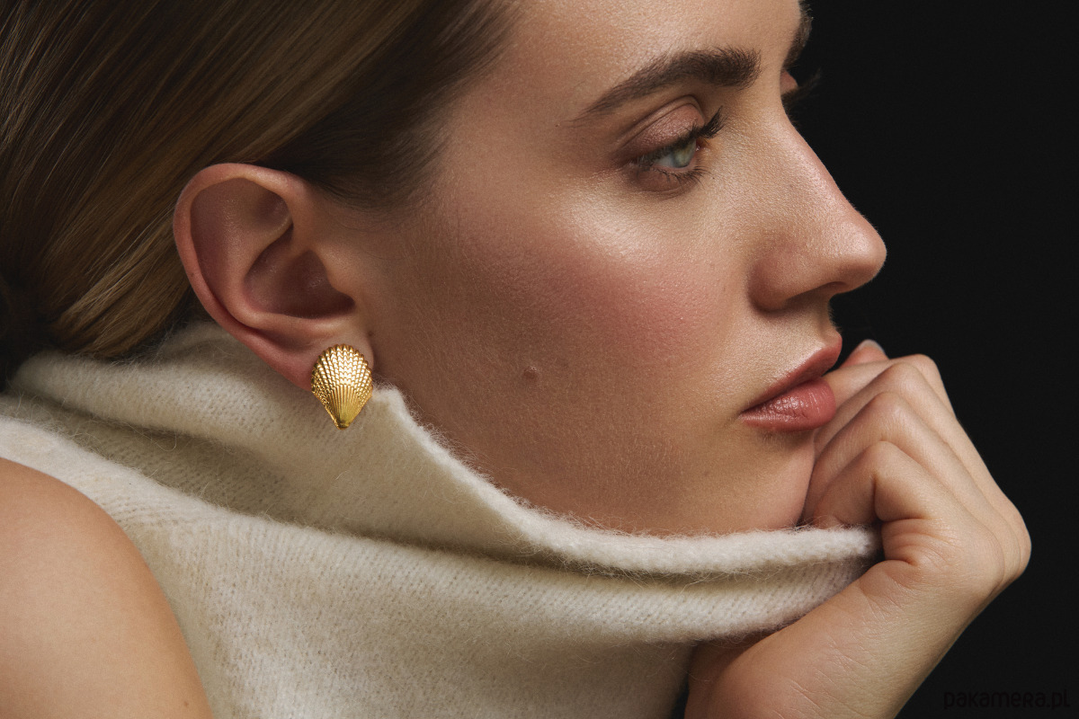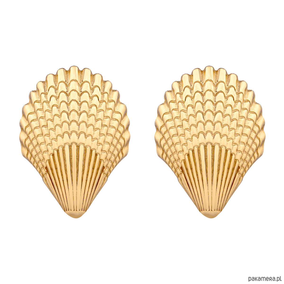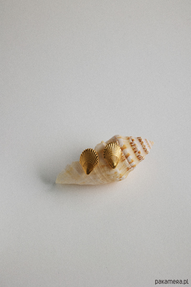 Złote kolczyki muszle. Całość wykonana ze srebra 925 powlekanego 24 karatowym żółtym złotem. Zapinane na sztyfty.
