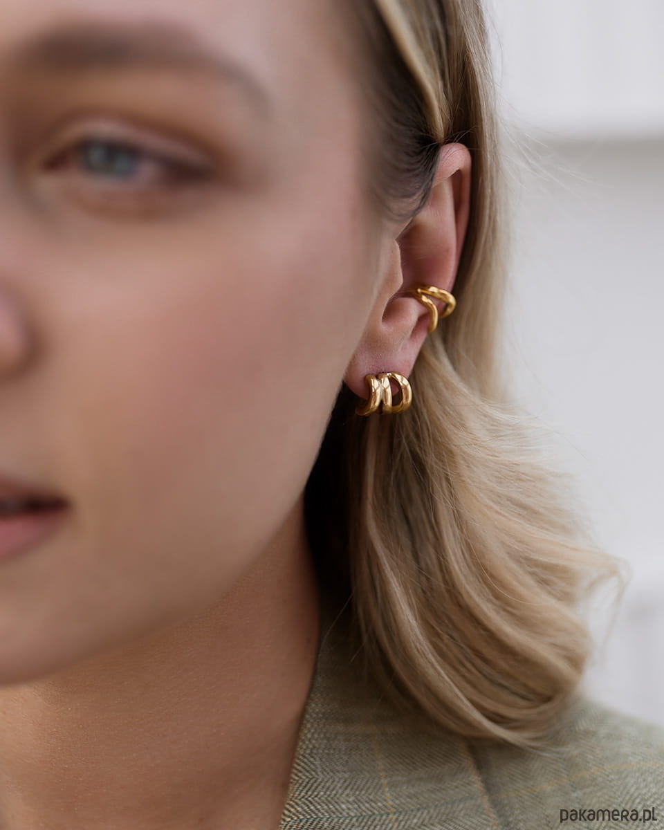 Ten model to ukłon w stronę kobiet, które lubią balans między minimalizmem, a artystycznym wyrazem. Trzy łagodnie wygięte, zaokrąglone linie tworzą rzeźbiarską formę.Efekt potrójnych kolczyków, bez dodatkowych przekłuć? Tak!Są lekkie, nieprzytłaczające i bardzo komfortowe. Dzięki błyszczącej powierzchni dodają twarzy świeżości i blasku.Możesz nosić je do t-shirtu i jeansów, ale też do czarnej marynarki. Dlaczego je pokochasz?wyglądają jak trzy kolczyki w jednymprzyciągają wzrok, ale są bardzo lekkiedają artystyczny vibe, ale nie są przekombinowanepasują do wszystkiegoWymiary:Wysokość: 1,1 cmSzerokość: 1,3 cmWaga: 4,3 gMateriał: stal chirurgiczna premiumWodoodporna i hipoalergiczna