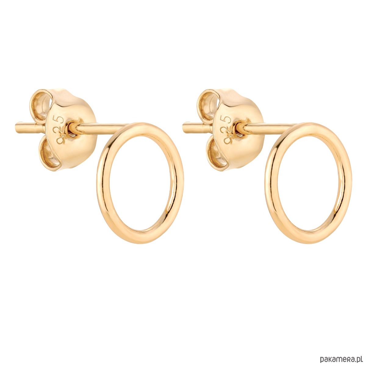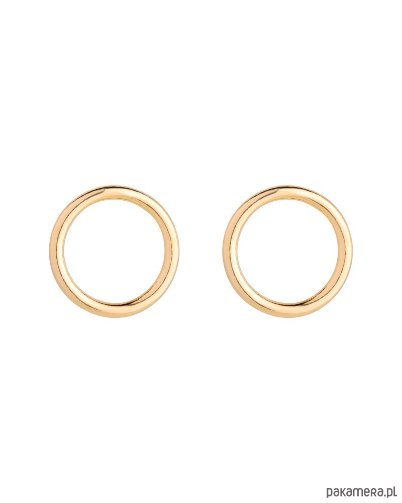 Złote kolczyki w kształcie obręczy. Zapinane na sztyft. Kolczyki posiadają zapięcia (baranki). Kolczyki w całości wykonane są ze srebra 925 powlekanego 24 karatowym żółtym złotem.