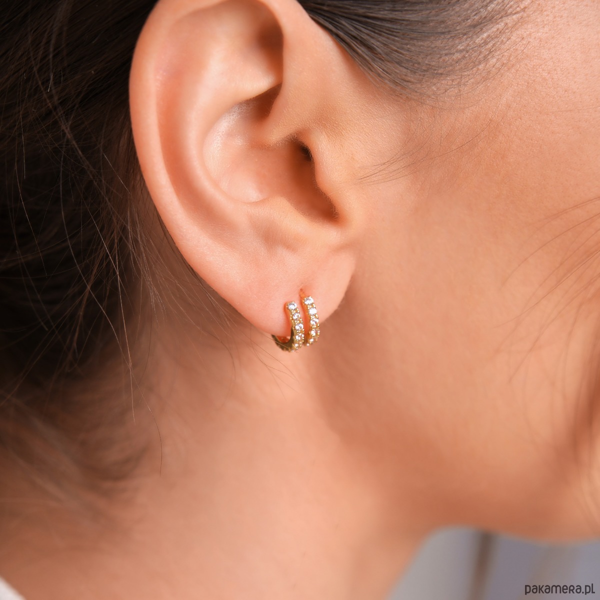 Kolczyki małe, podwójne z cyrkoniami ze srebra 925 pozłacanego: