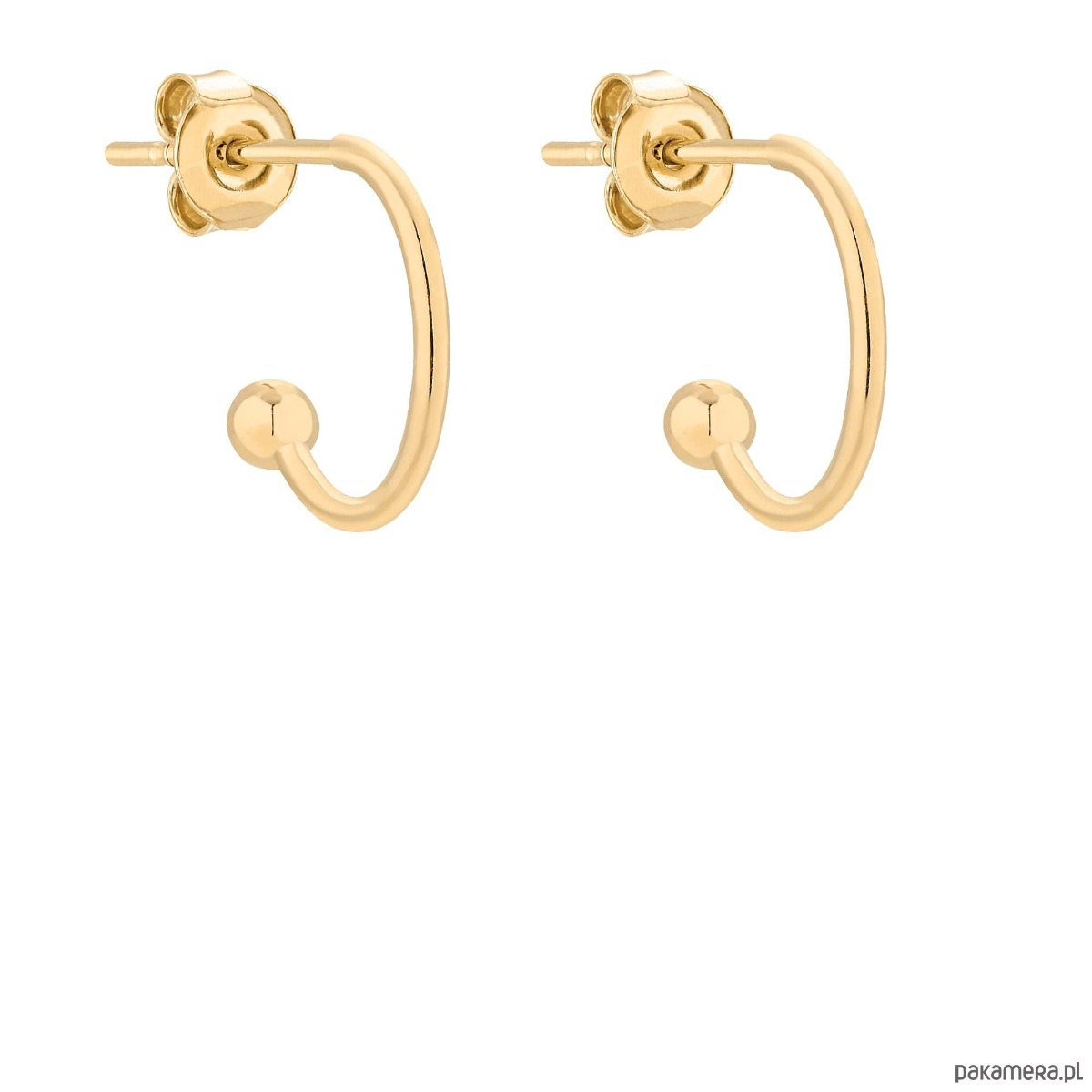 Złote kolczyki półkola. Całość wykonana ze srebra 925 powlekanego 24 karatowym żółtym złotem. Zapinane na sztyft. Kolczyki posiadają zapięcia (baranki).
