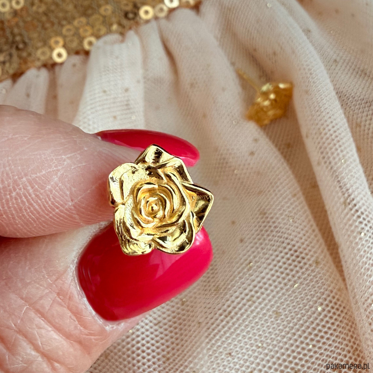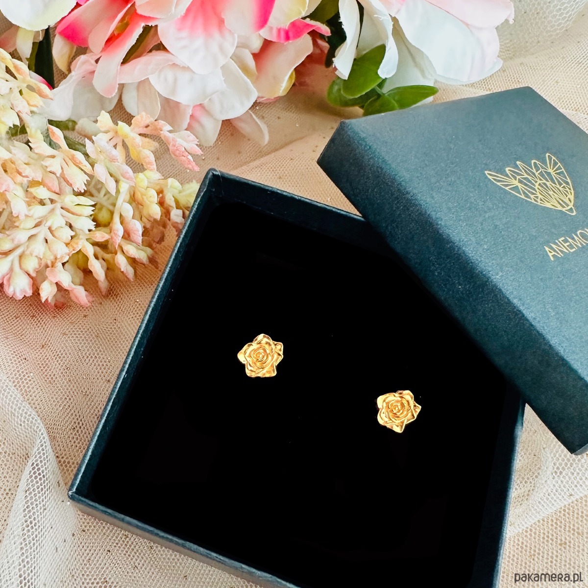 Złote kolczyki róże, eleganckie sztyfty kwiatki