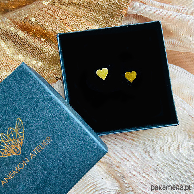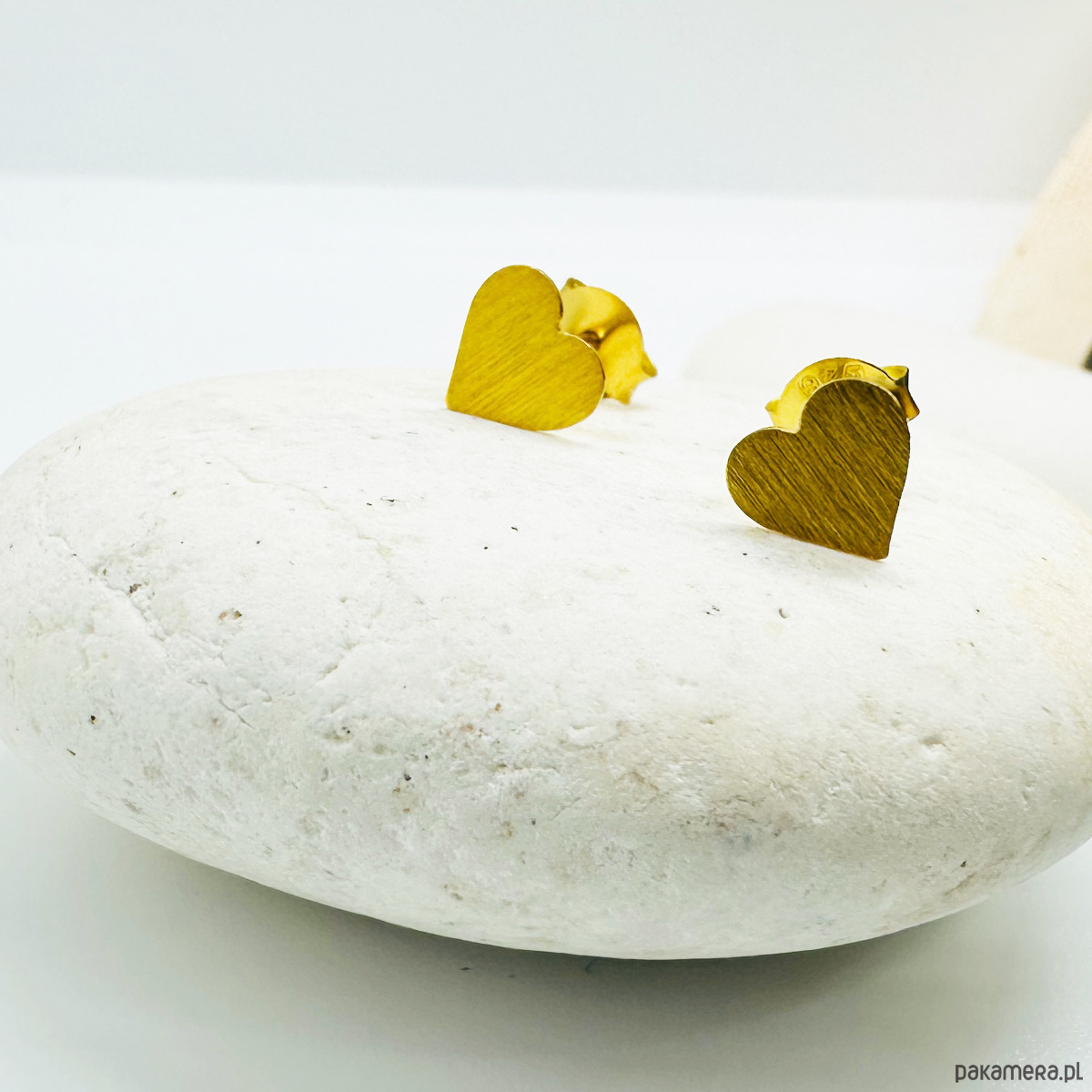 Złote kolczyki serca, mini sztyfty serduszka- komunia
