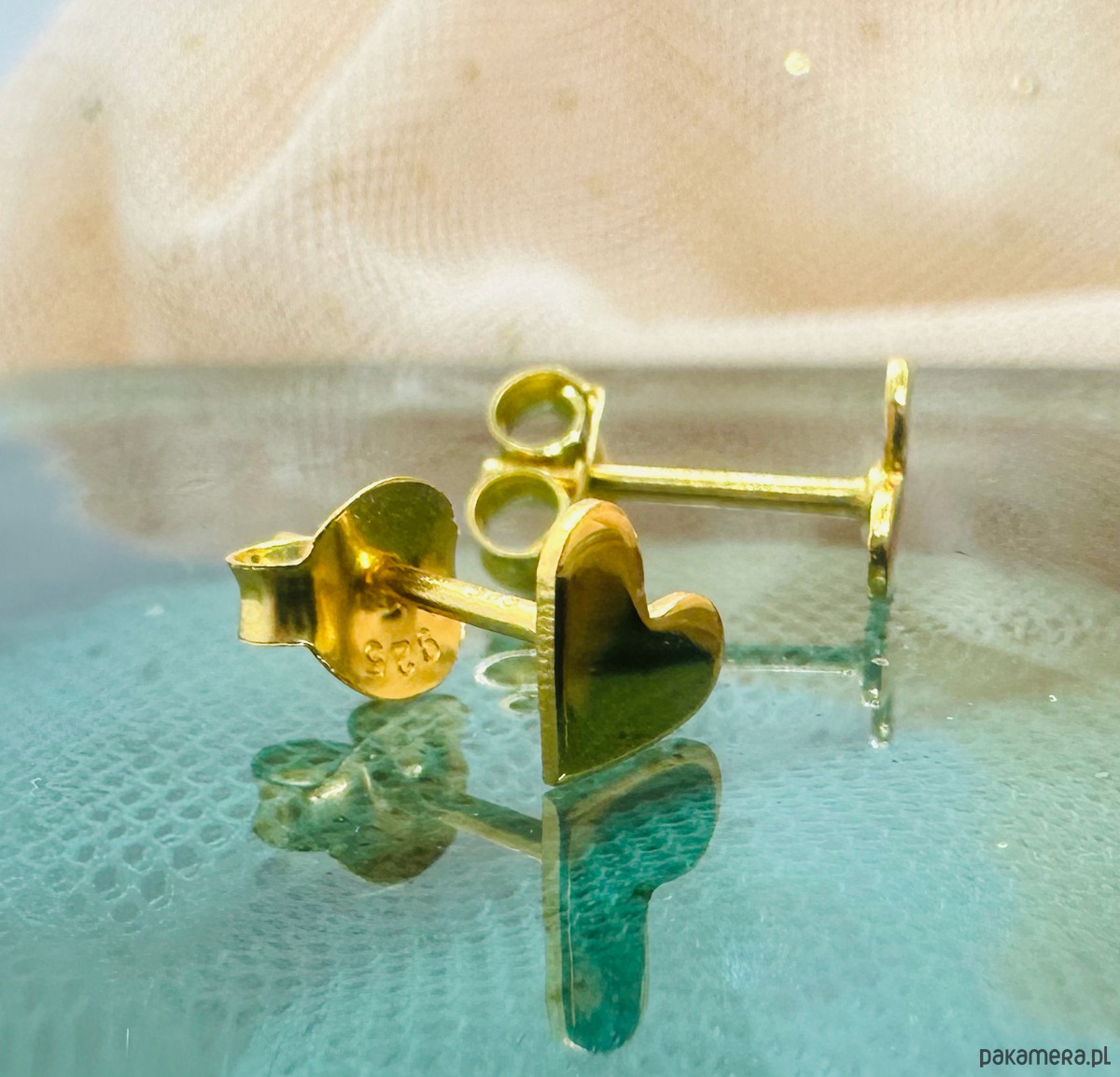 Złote kolczyki serca, mini sztyfty serduszka, komunia