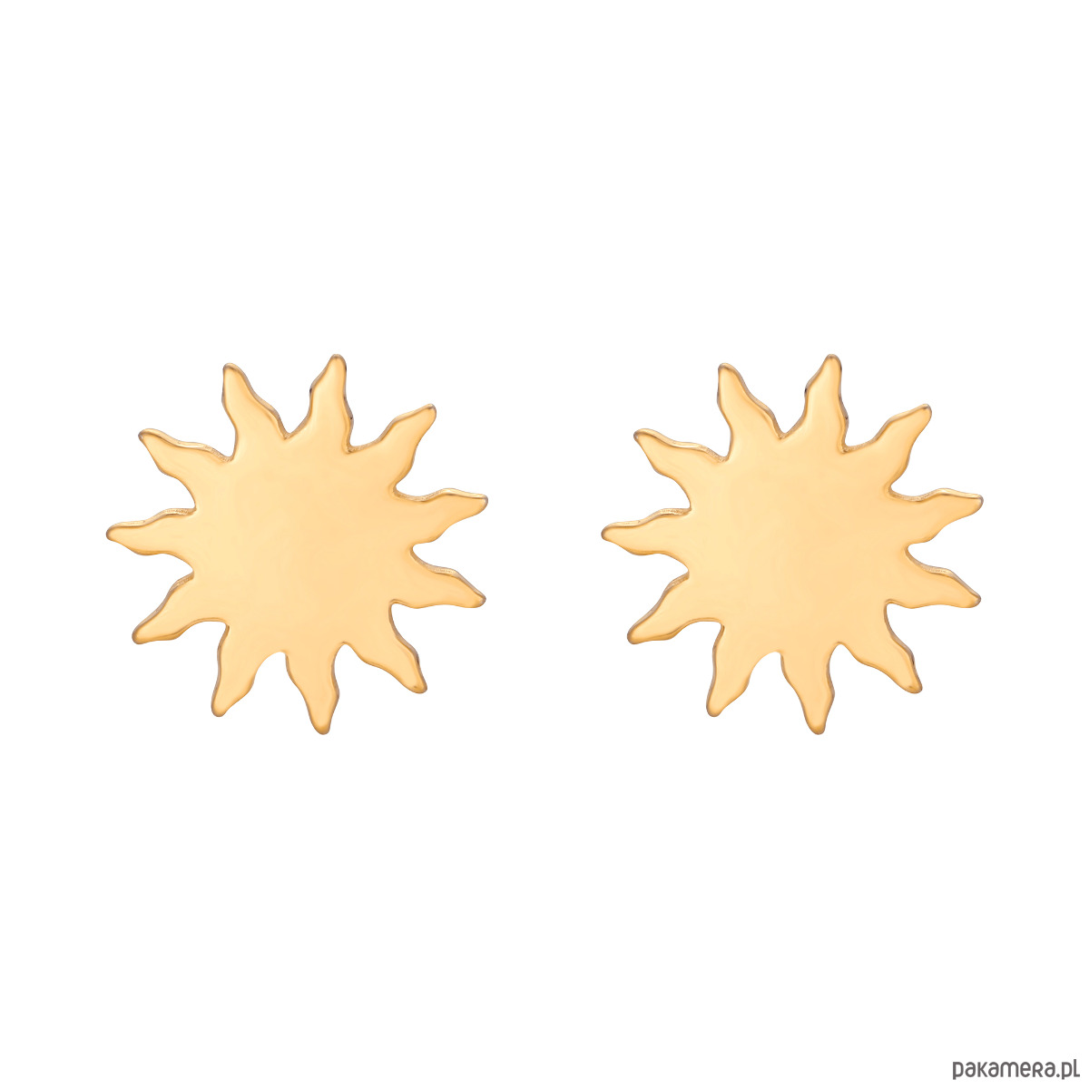 Złote kolczyki słoneczka. Całość wykonana ze srebra 925 powlekanego 24 karatowym żółtym złotem. Zapinane na sztyft. Kolczyki posiadają zapięcia (baranki).