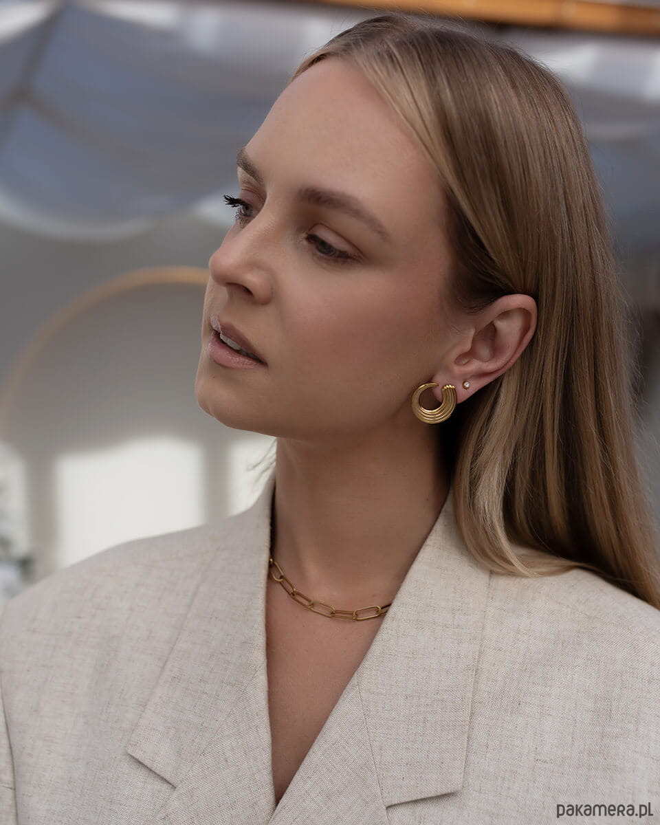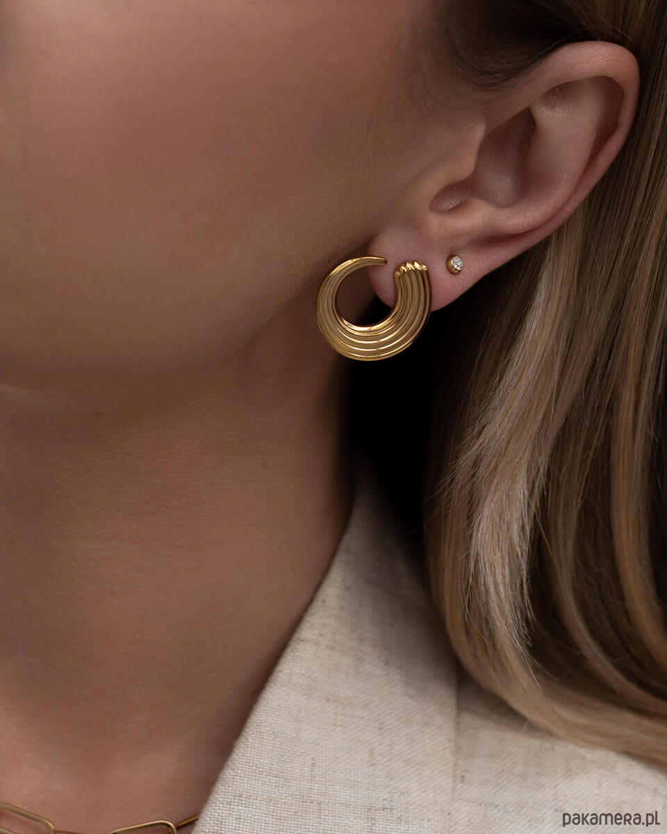 Chcesz dodać charakteru swojej stylizacji? Te złote kolczyki przyciągają spojrzenia od pierwszej sekundy. Ich nietypowy kształt i wyrazista forma sprawiają, że wyglądają jak z wybiegów - ale pasują do codziennych outfitów.Średnica 2,5 cm to idealny rozmiar, który wyróżnia, ale nie przytłacza. Żłobiona powierzchnia pięknie odbija światło. Kolczyki ważą 5,9 g - są solidne, ale nadal wygodne.Nie uczulają. Nie ciemnieją. Nie musisz ich zdejmować na noc, pod prysznic czy na siłownię.Jeśli masz dość nudnej biżuterii, ten model będzie świetnym wyborem. Doda energii i świeżości każdemu lookowi - od białej koszuli po wieczorową sukienkę.Są idealne jako prezent - dla siebie lub bliskiej osoby.Wymiary: średnica zewnętrzna 2,5 cm, szerokość 0,9 cm.Waga: 5,9 g.