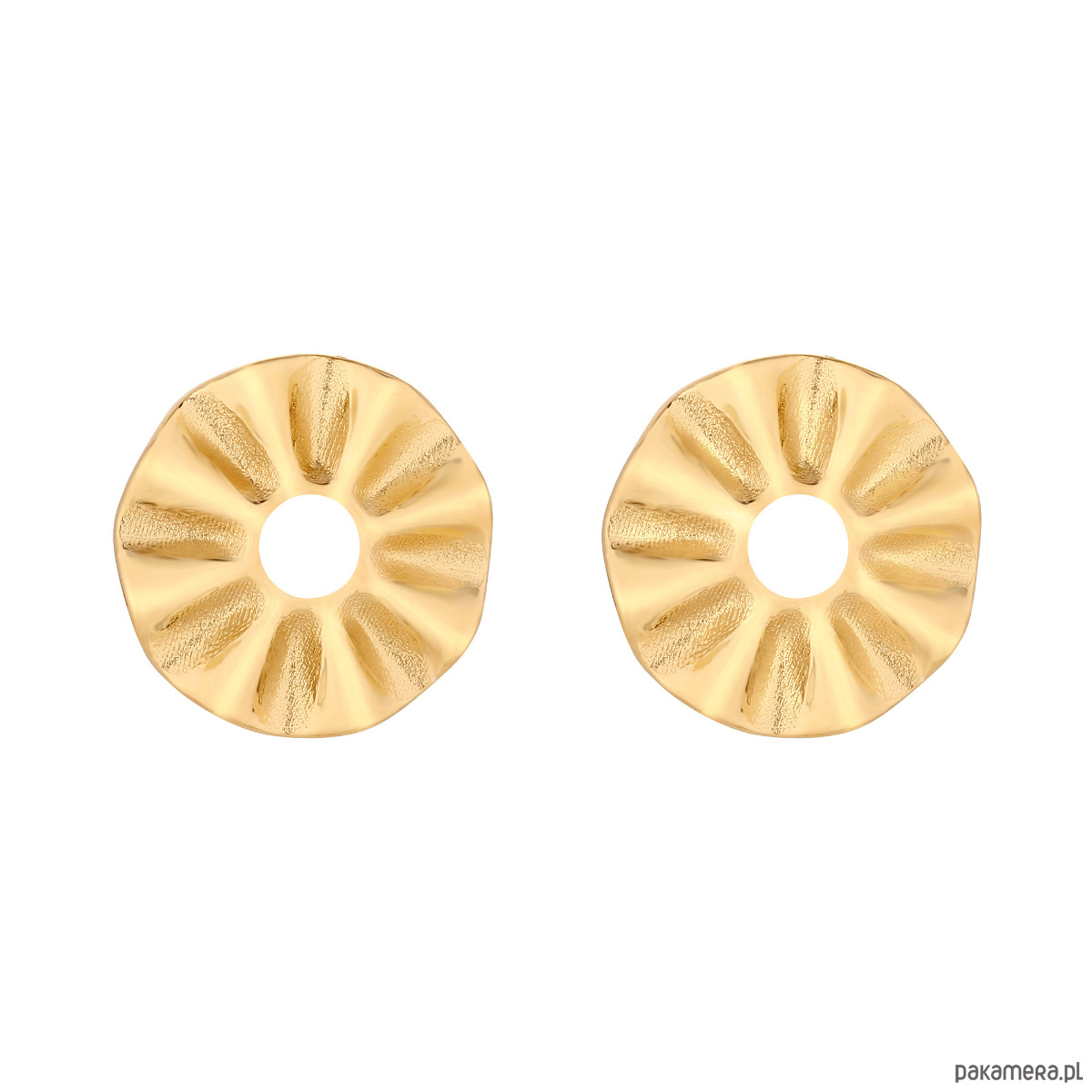 Złote kolczyki wachlarze. Całość wykonana ze srebra 925 powlekanego 24 karatowym żółtym złotem. Zapinane na sztyft. Kolczyki posiadają zapięcia (baranki).