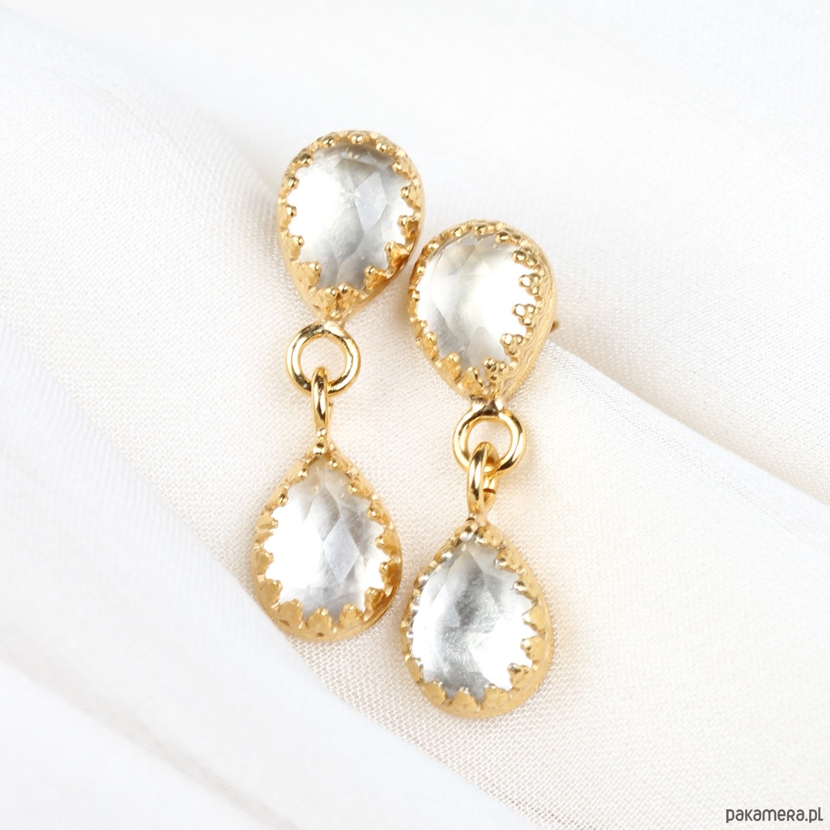Złote kolczyki Jolie z kryształem górskim