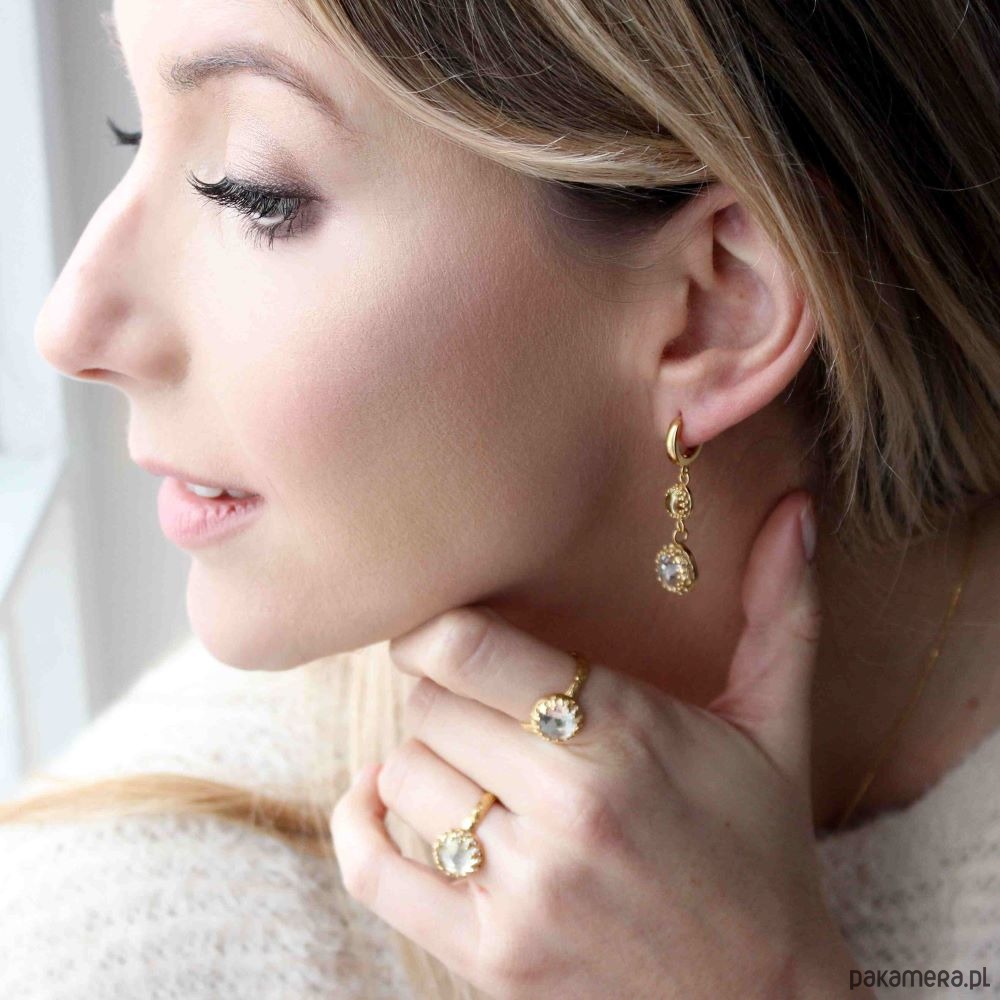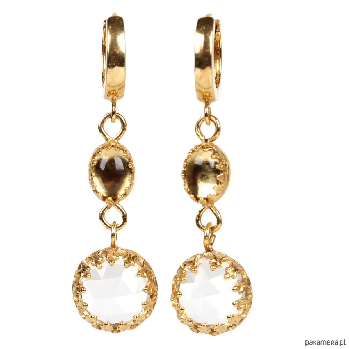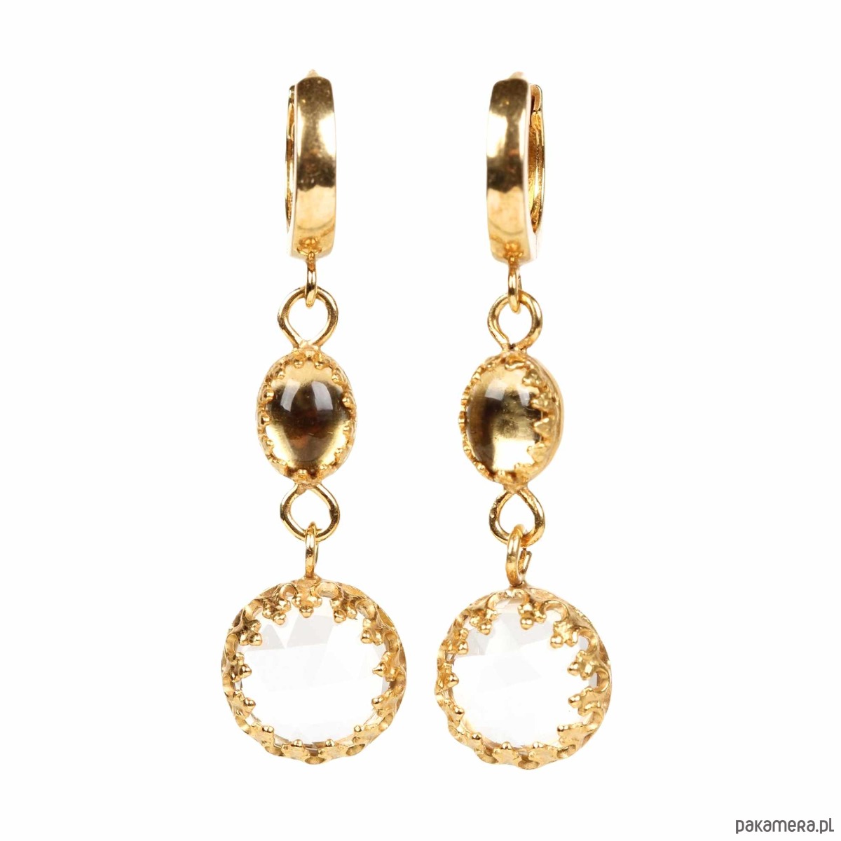 Ręcznie wykonane kolczyki ze srebra pokrytego 24 karatowym złotem z cytrynem i kryształem górskim