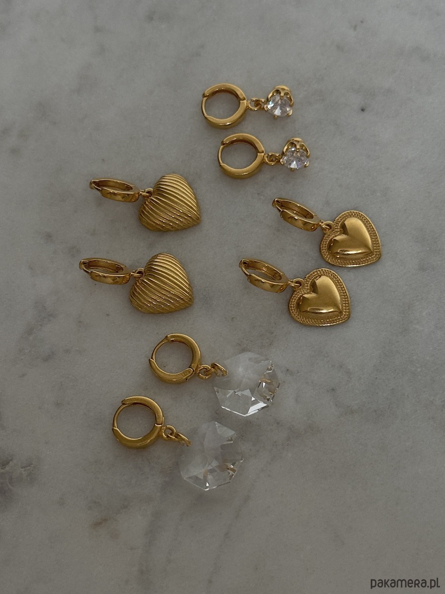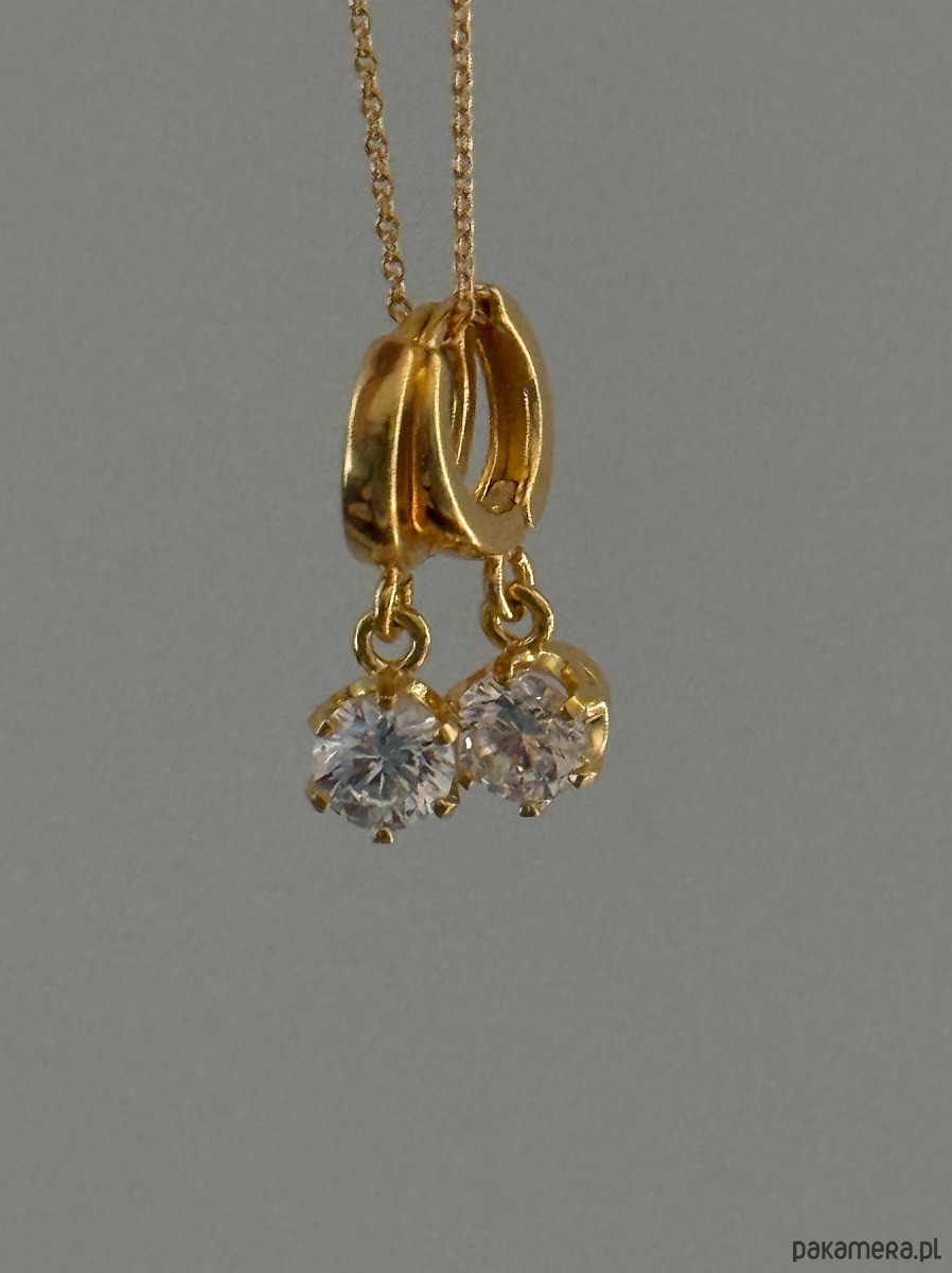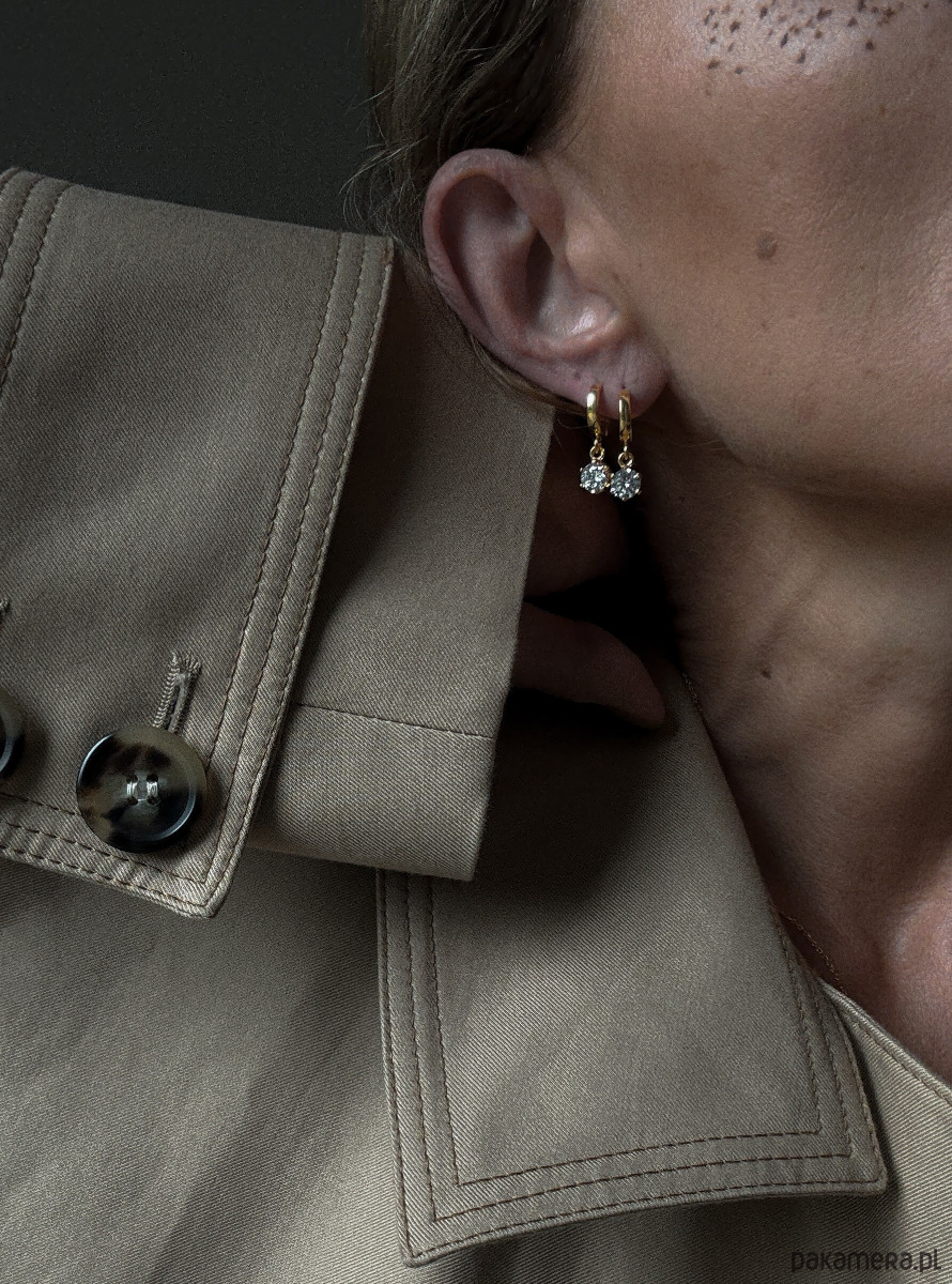 Złote kolczyki z bezbarwnymi cyrkoniami. Całość wykonana ze srebra 925 powlekanego 24 karatowym żółtym złotem.