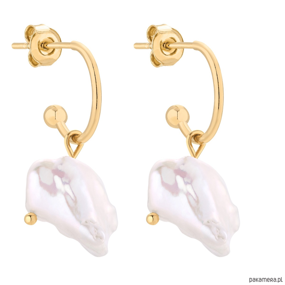 Złote kolczyki z naturalnymi perłami. Całość wykonana ze srebra 925 powlekanego 24 karatowym żółtym złotem.