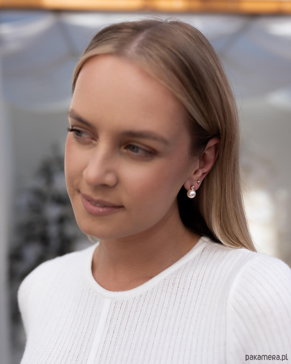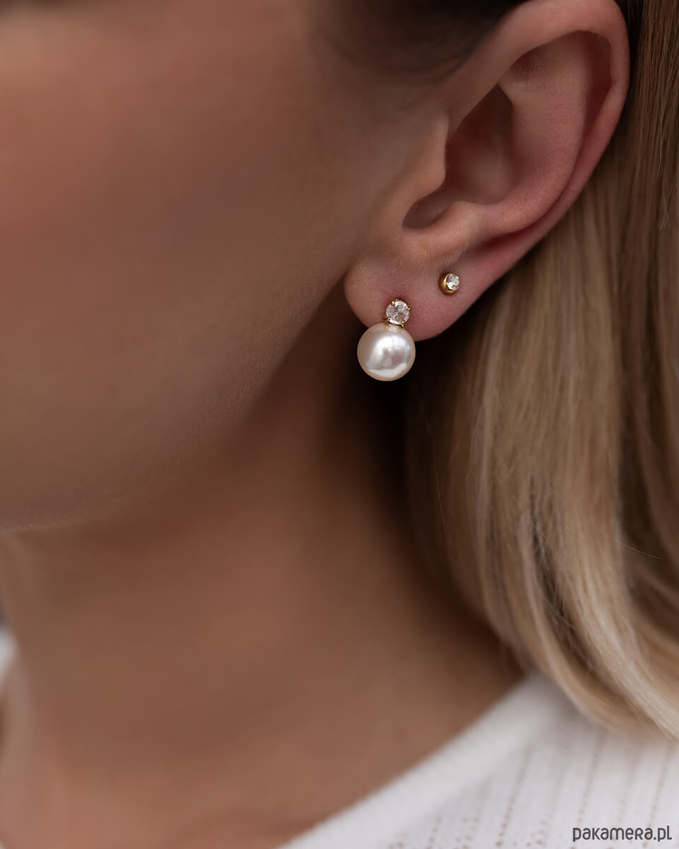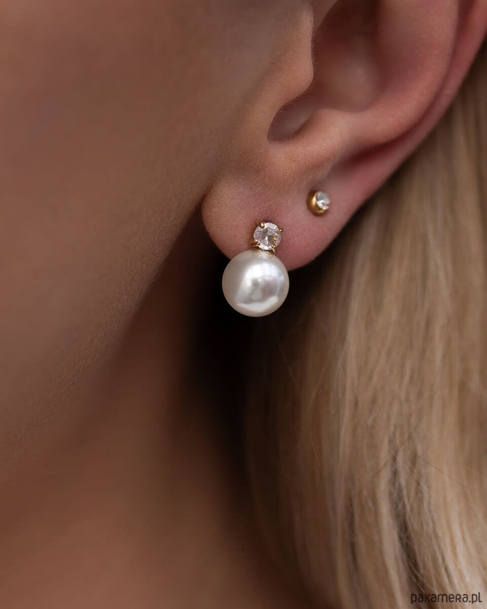 Złote kolczyki z perłą i cyrkonią ze stali chirurgicznej Paraiso Vittoria