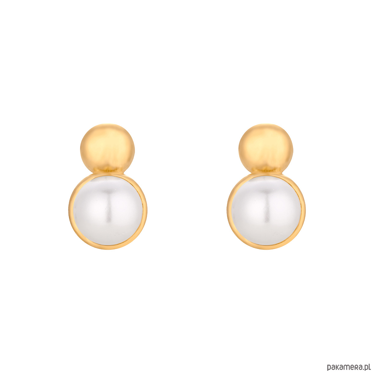 Złote kolczyki z perłami. Całość wykonana ze srebra 925 powlekanego 24 karatowym żółtym złotem. Zapinane na sztyft. Kolczyki posiadają zapięcia (baranki).