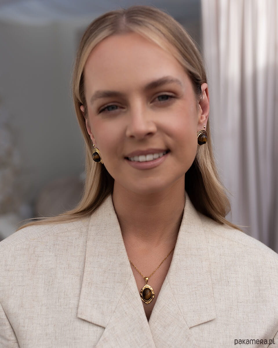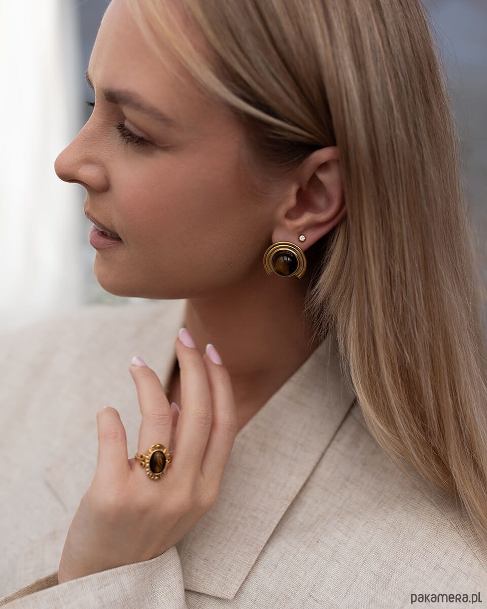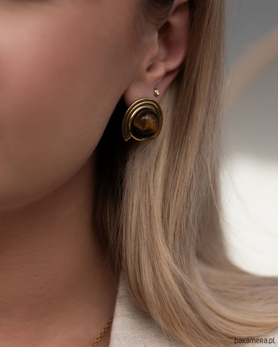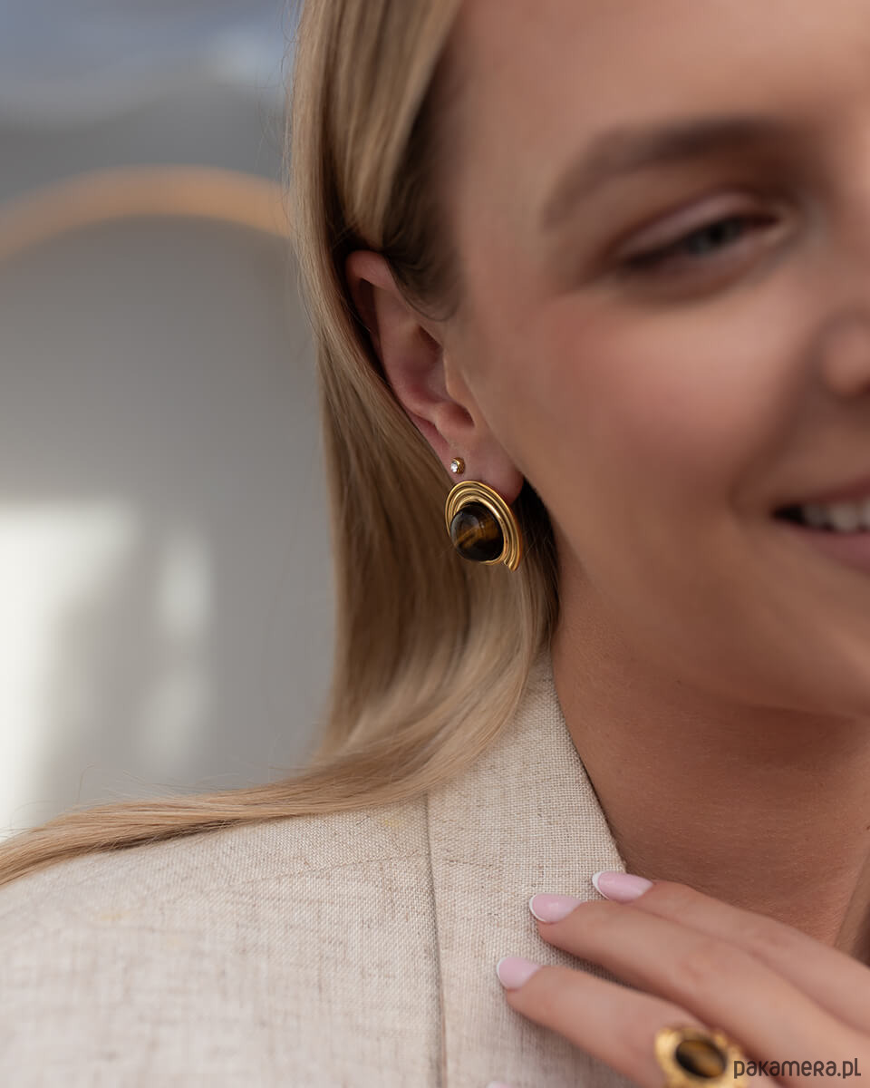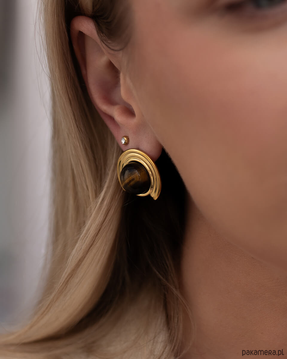 Złote kolczyki ze stali chirurgicznej premium tygrysie oko Paraiso Kleia