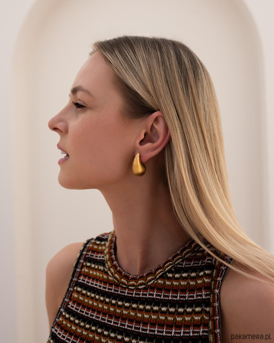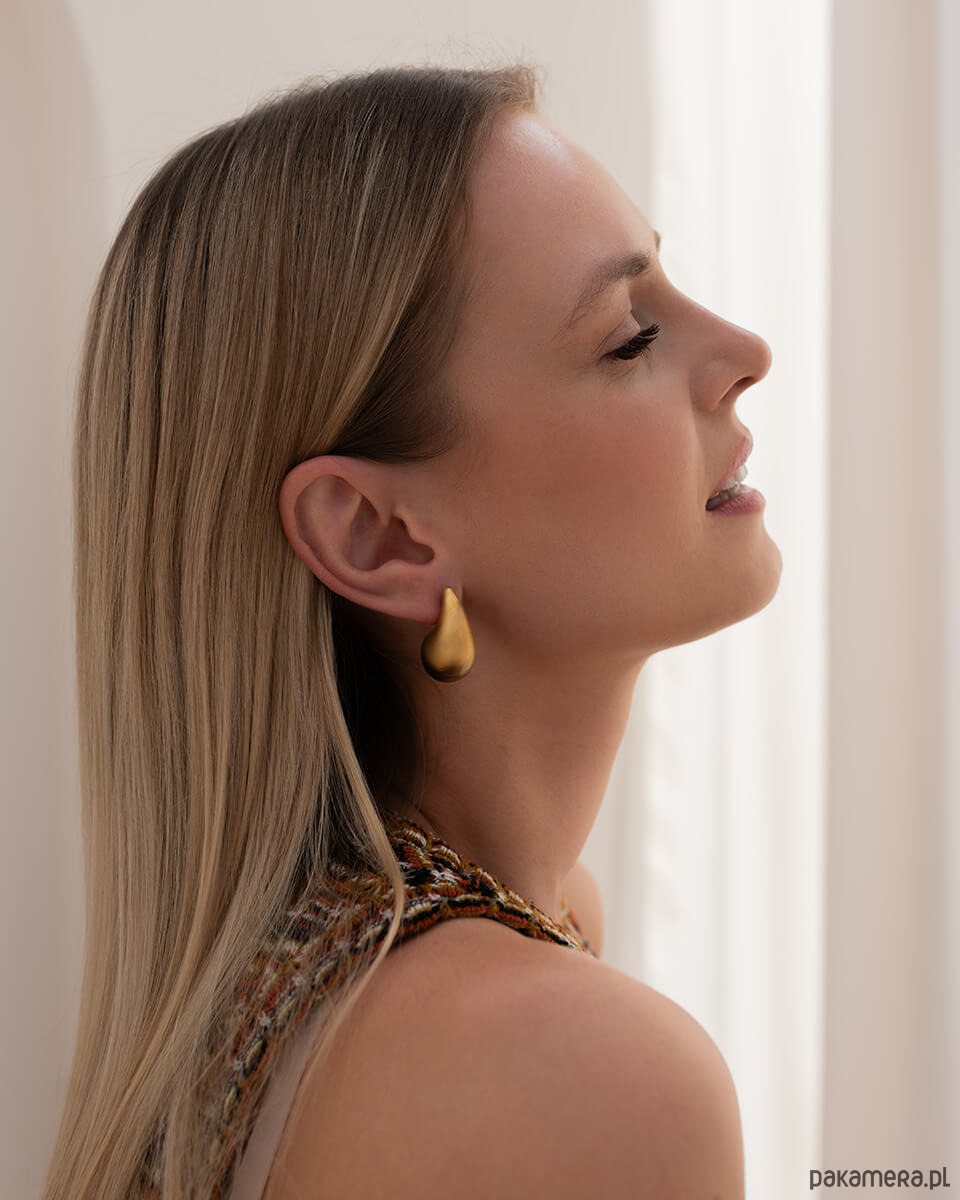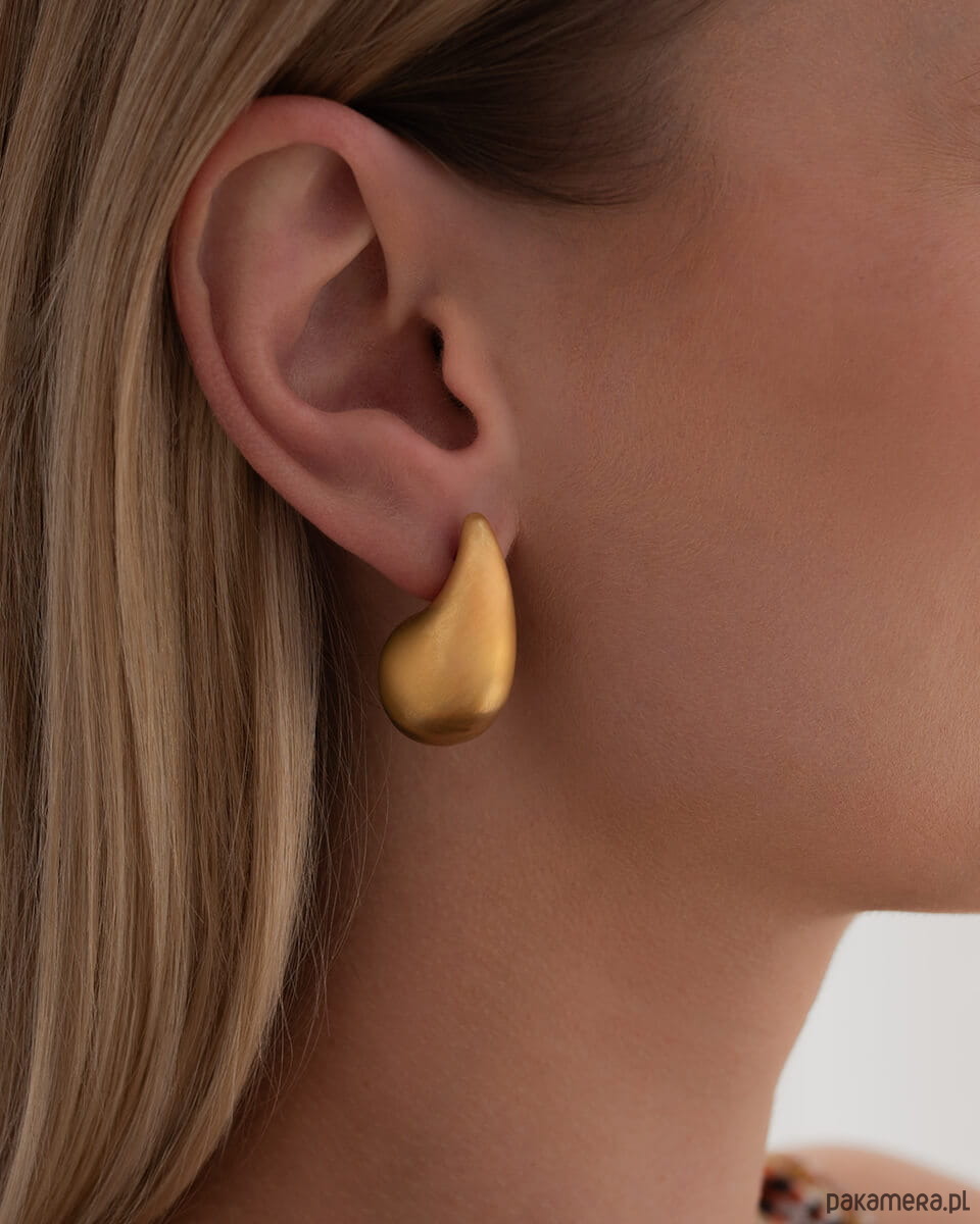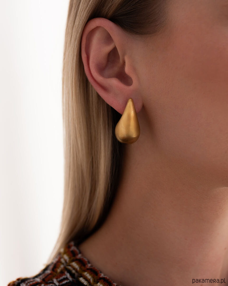 Złote, matowe kolczyki w kształcie łezek to wyjątkowy wyraz elegancji i subtelności, który zachwyca swoim minimalistycznym designem.