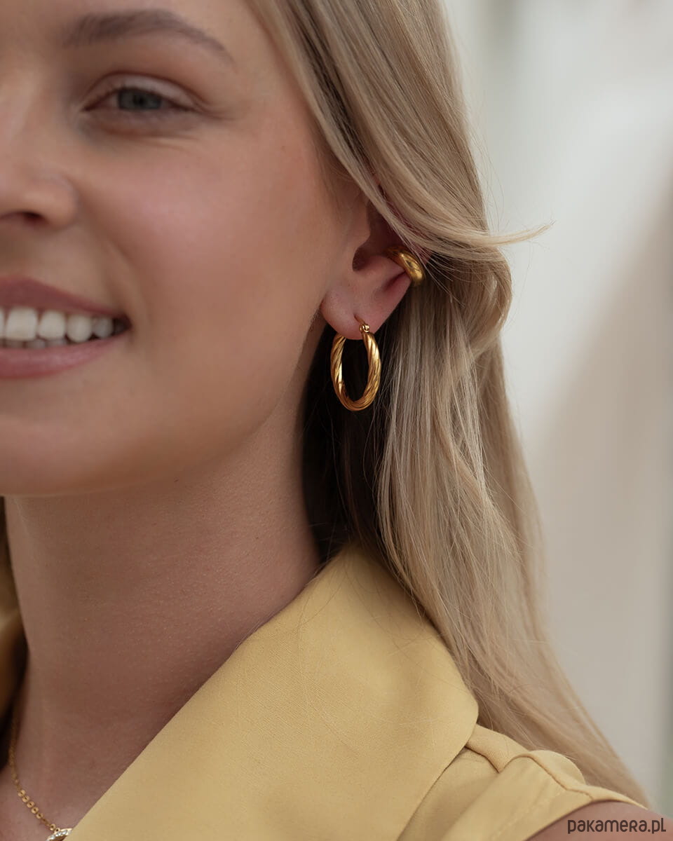 Te wyjątkowe kolczyki to doskonałe połączenie nowoczesnego designu i klasycznej elegancji. Wykonane są z trwałej i hipoalergicznej stali chirurgicznej 316L i pozłacane 18-karatowym złotem. Powłoka z 18-karatowego złota dodaje im klasy i elegancji, a unikalny design w kształcie koła przyciąga uwagę. Te kolczyki są doskonałym wyborem dla kobiety, która ceni sobie elegancję i chce mieć w swojej kolekcji biżuterii coś wyjątkowego. Są one również doskonałym prezentem dla bliskiej osoby. Odbierz rabat na pierwsze zakupy i dodaj je do koszyka.