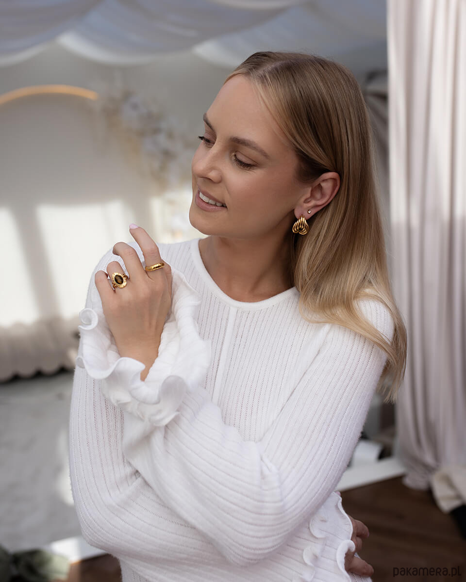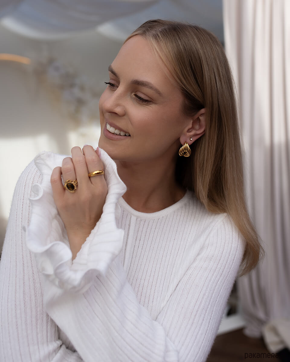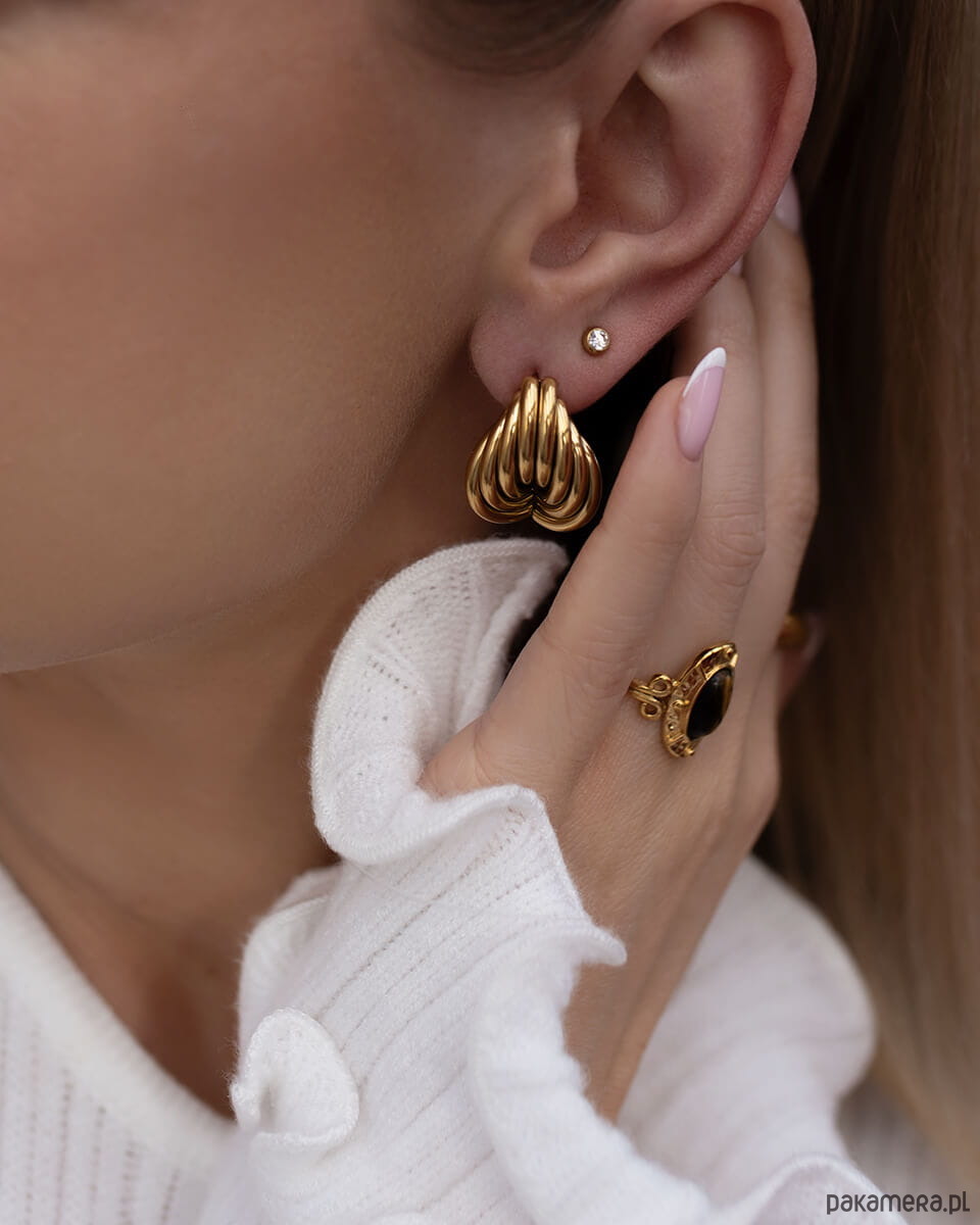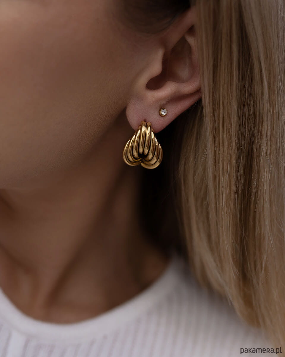 To kolczyki stworzone z myślą o kobietach, które cenią sobie elegancję, ale nie chcą rezygnować z komfortu. Ich forma jest przestrzenna, pełna ruchu, a przy tym niezwykle delikatna - idealnie współgra z rysami twarzy i wydobywa naturalne piękno. Sprawdzą się na specjalne okazje, ale też będą cudownym dopełnieniem codziennych stylizacji.Wymiary: Wysokość: 2,5 cm, szerokość: 1,9 cmWaga: 1,4 gMateriał: stal chirurgicznaKolczyki wykonano ze stali chirurgicznej premium, która jest odporna na działanie czasu, wilgoci i kosmetyków. To materiał, który nie traci koloru, nie rdzewieje i nie uczula - dlatego właśnie tak wiele kobiet wybiera dziś biżuterię ze stali chirurgicznej. Dodaj je do koszyka i przekonaj się, jak zachwycają swoim pięknem i trwałością.