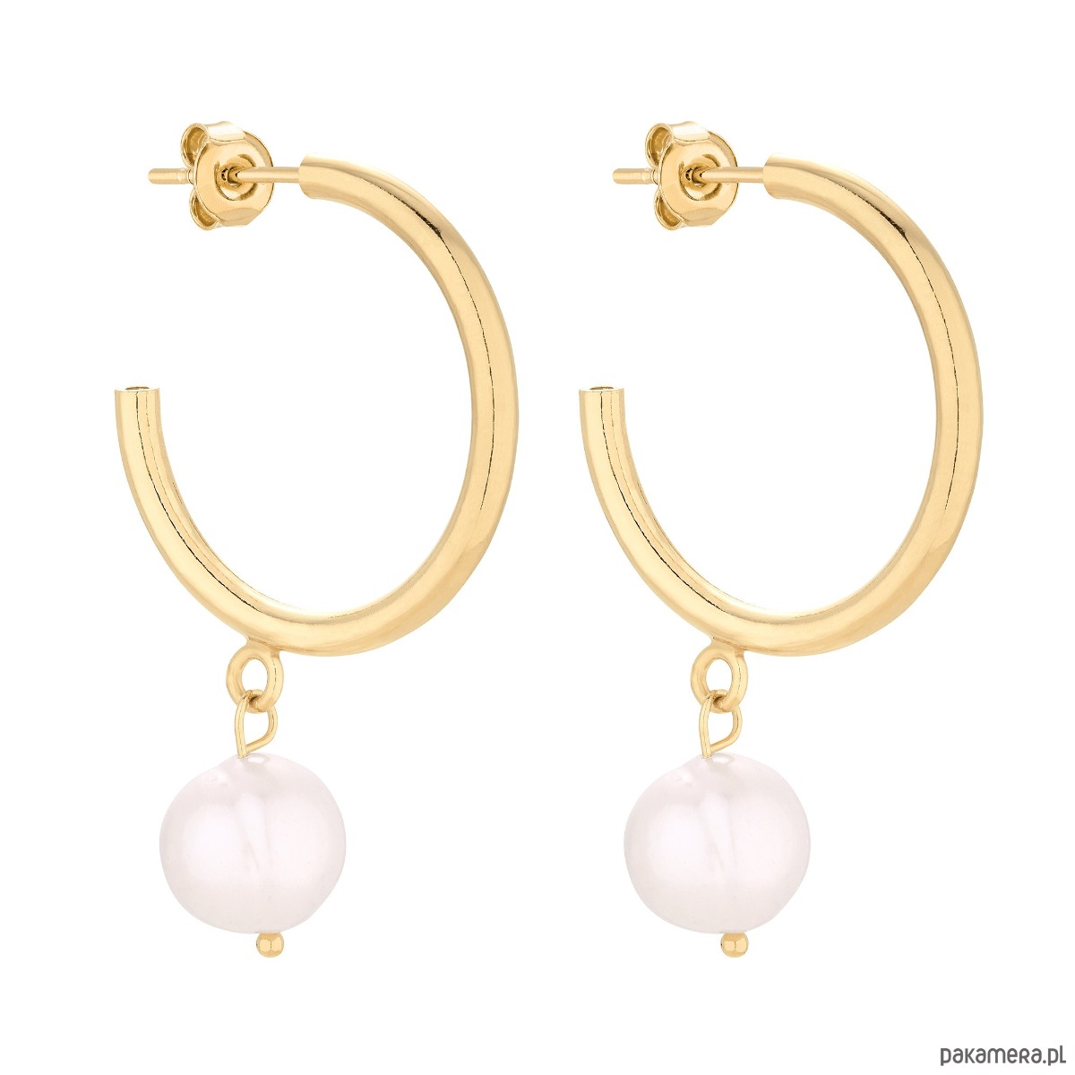 Grube, półokrągłe, złote kolczyki z naturalnymi, nieregularnymi perłami. Całość wykonana ze srebra 925 powlekanego 24 karatowym żółtym złotem.