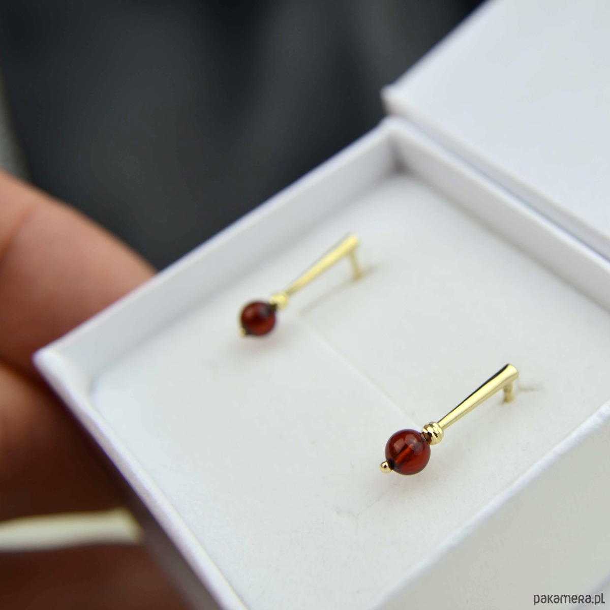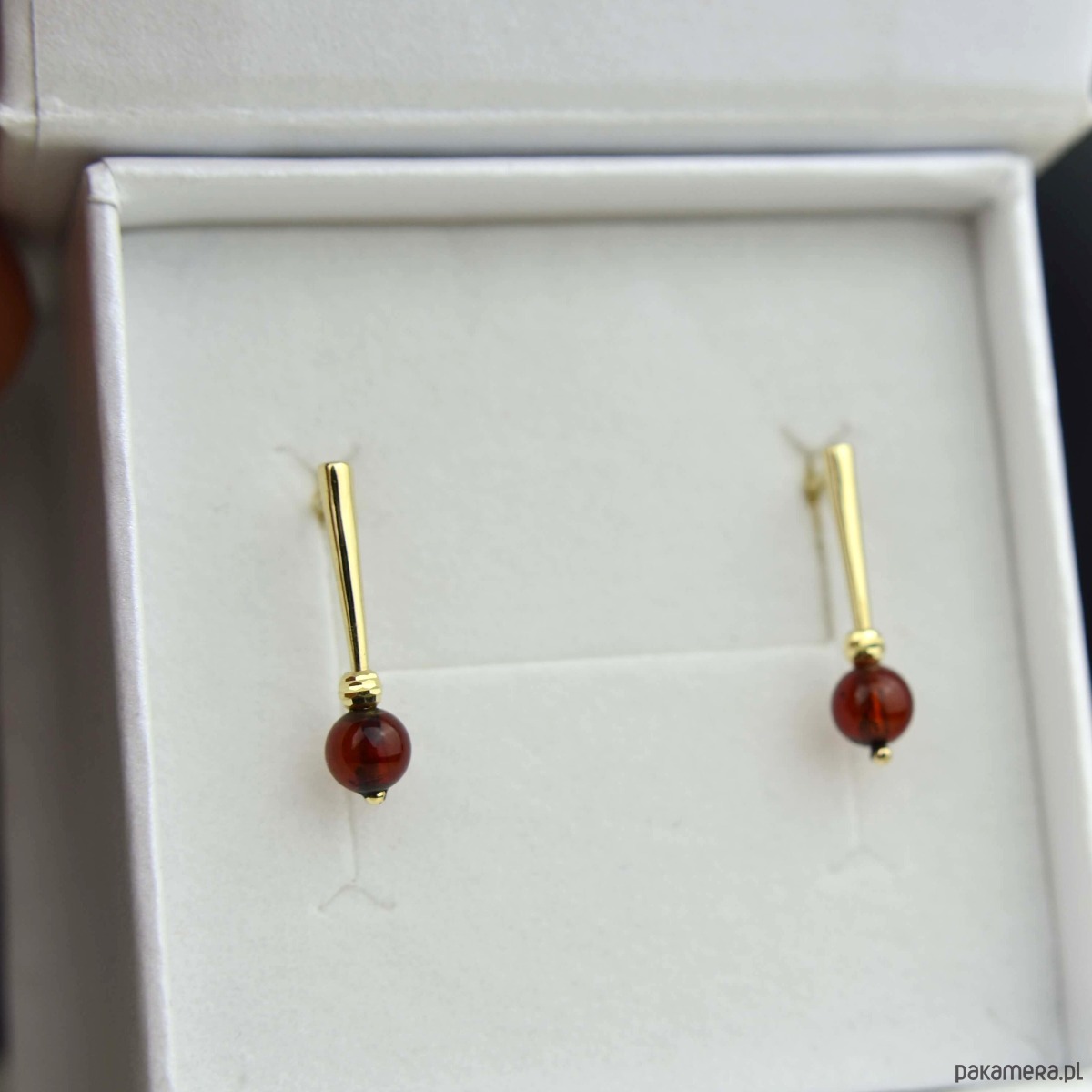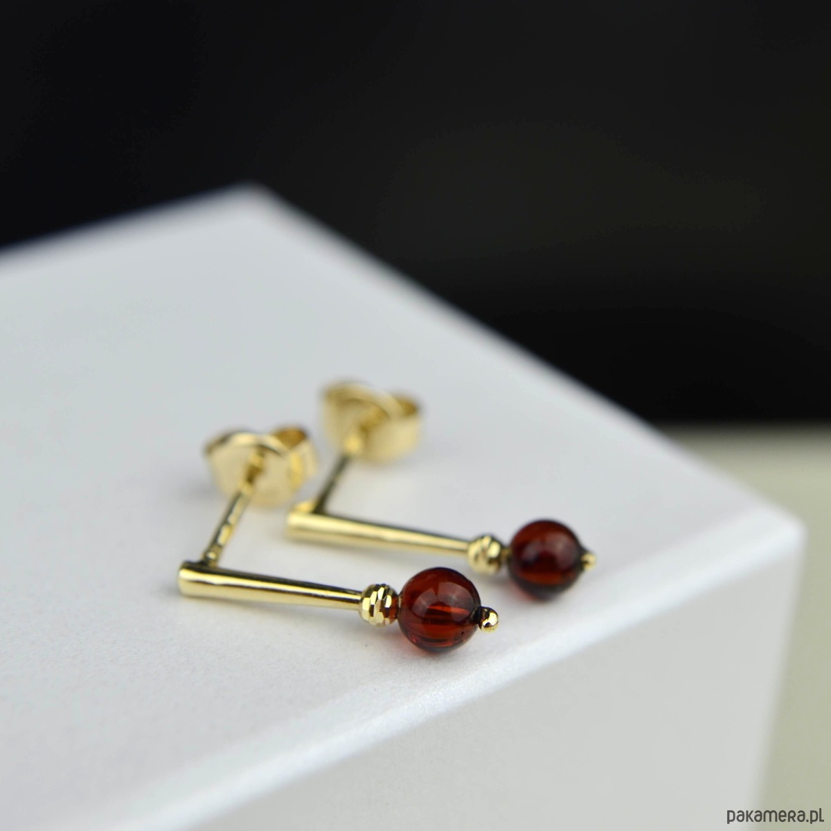 Złote sztyfty z koniakowym bursztynem pr. 585