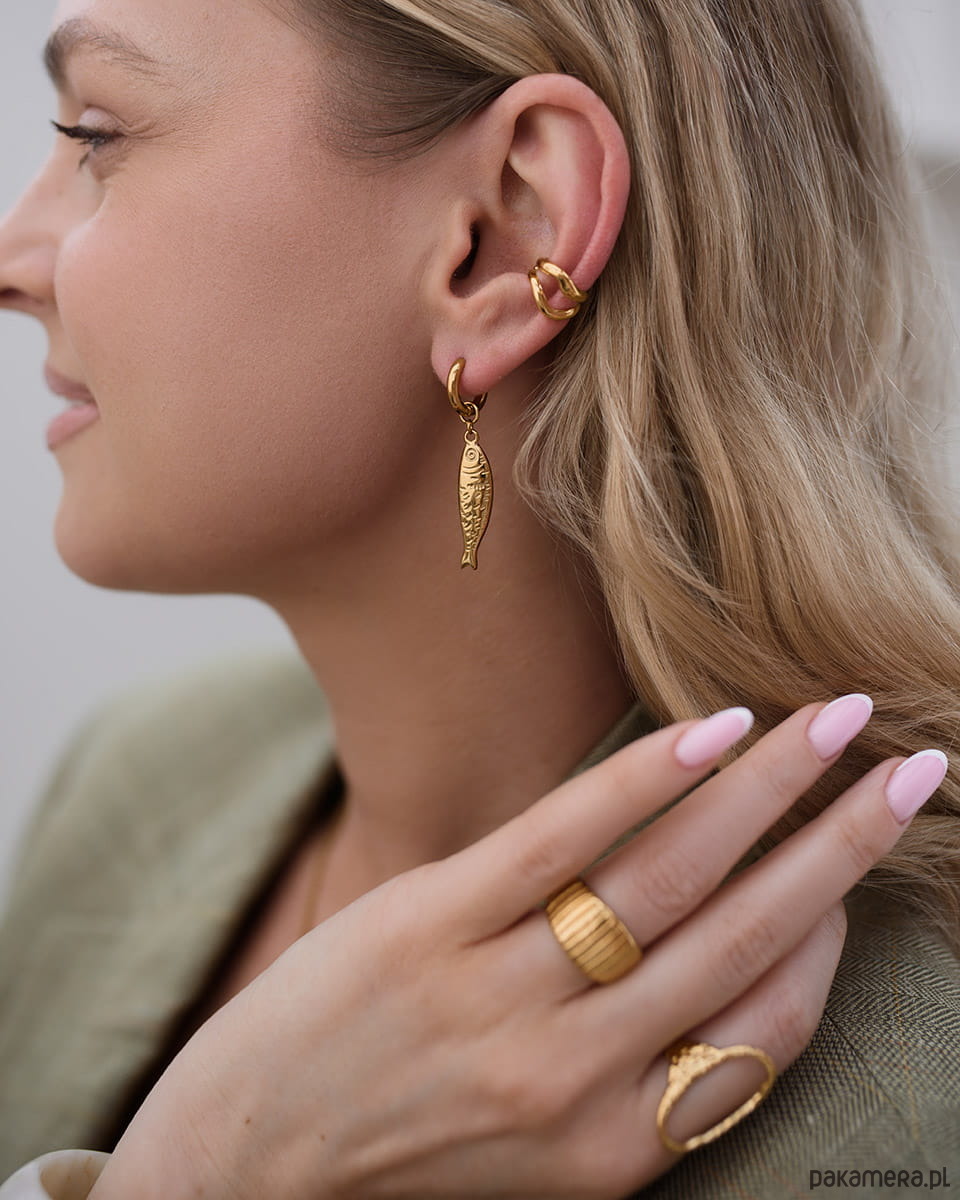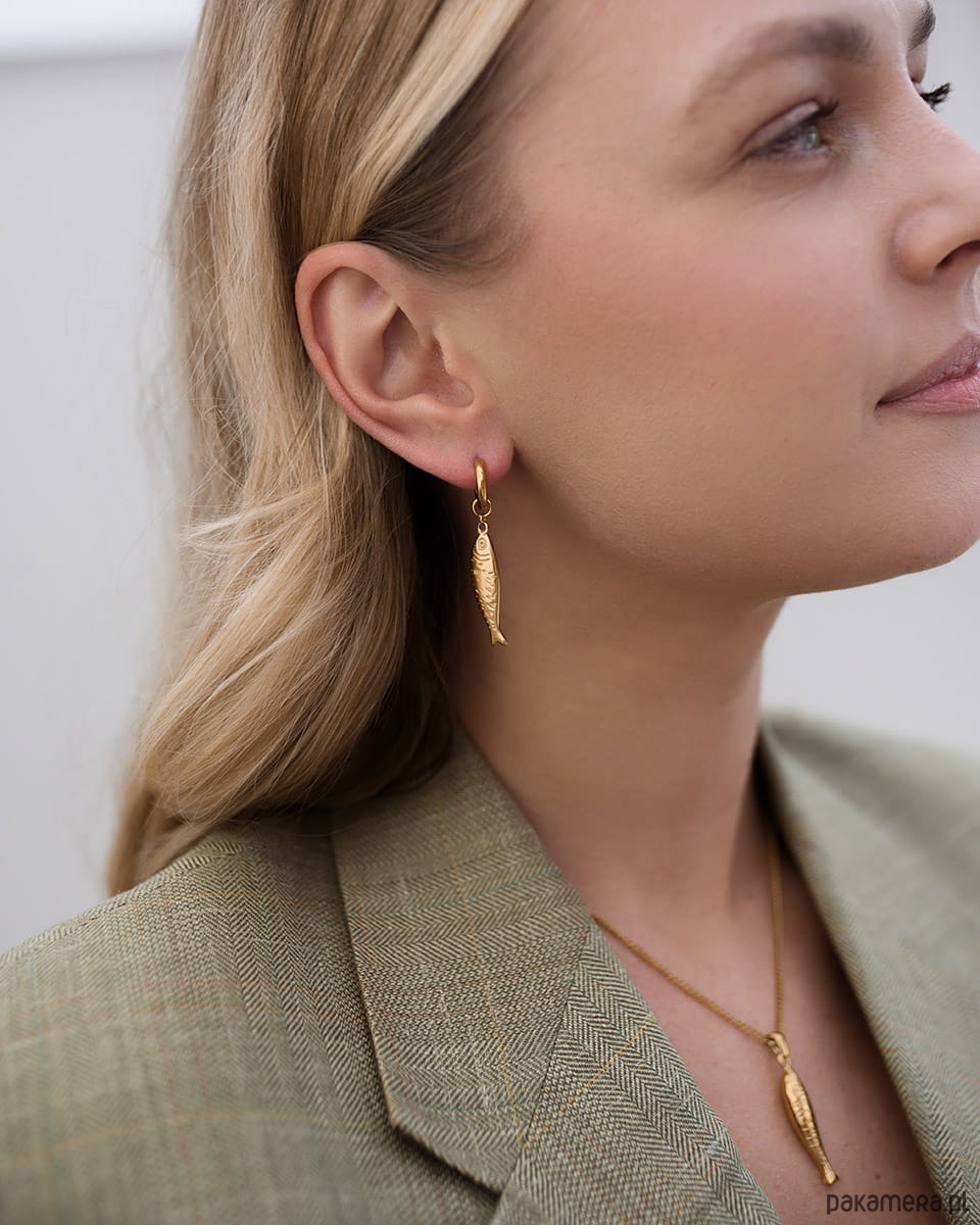 Sardis to złote kolczyki koła z odpinaną zawieszką w kształcie rybki. Możesz nosić je na dwa sposoby:- jako wyraziste kolczyki z motywem morskim,- albo jako klasyczne, gładkie złote kolczyki koła.