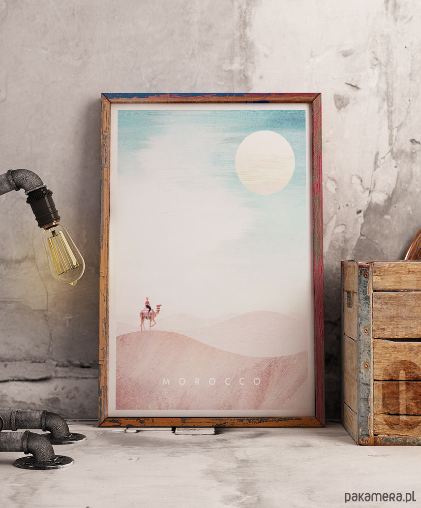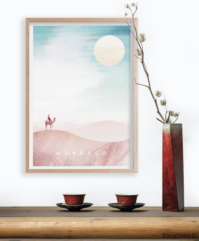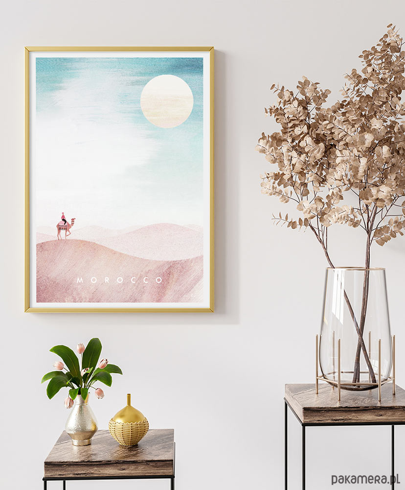 Plakat Maroko zabierze nas wprost na złote piaski pustyni, by podziwiać jedne z najpiękniejszych wydm Erg Chebbi. Stonowane, ciepłe kolory podkreślą każde wnętrze i stanowić będą doskonałą dekorację domu.