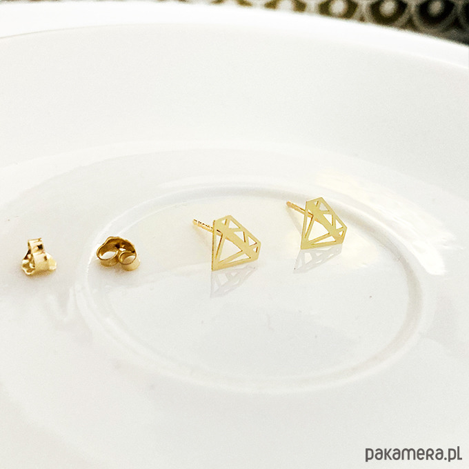 Piękne kolczyki z wyjątkowym wzorem diamentu. Kolczyki są lekkie i wygodne w noszeniu. Wykonane ze złota próby 585.