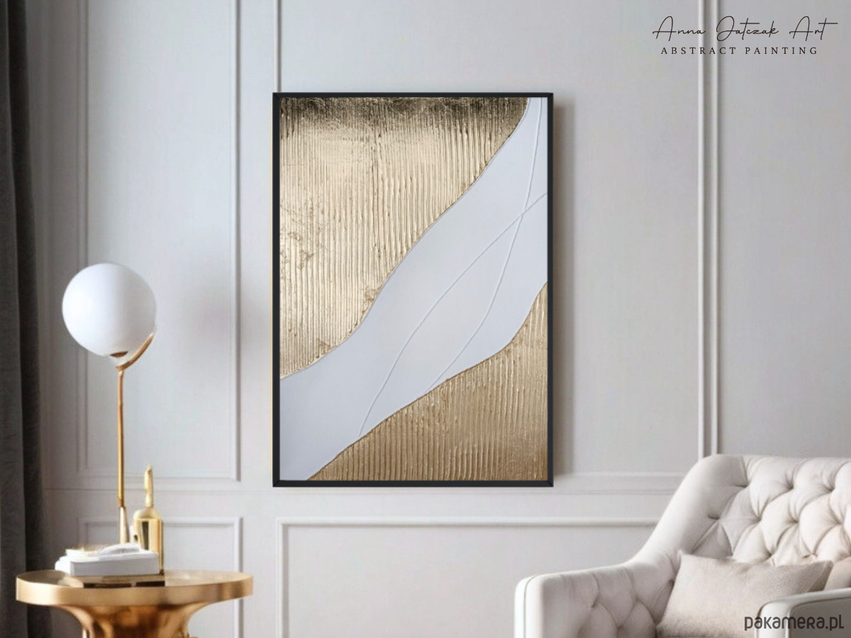 ZŁOTO Abstrakcyjny obraz strukturalny ze złotem, ręcznie malowany, 70x50 cm