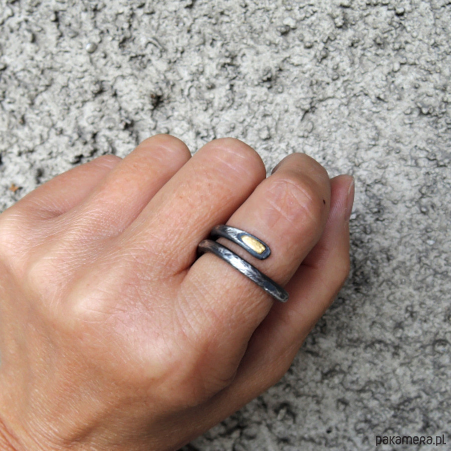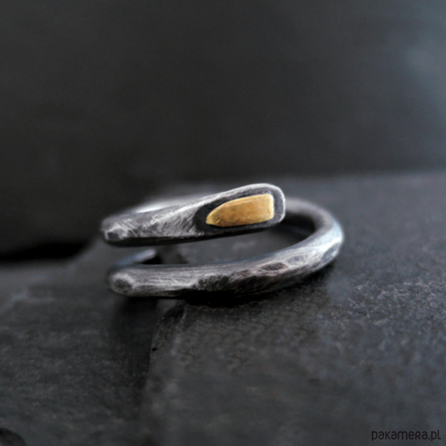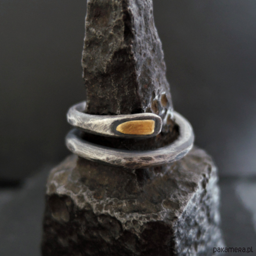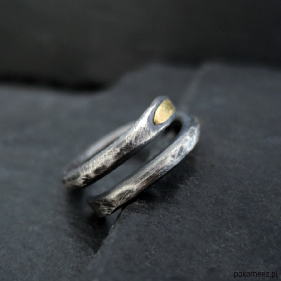 Prosty, surowy pierścionek - srebro i złoto.