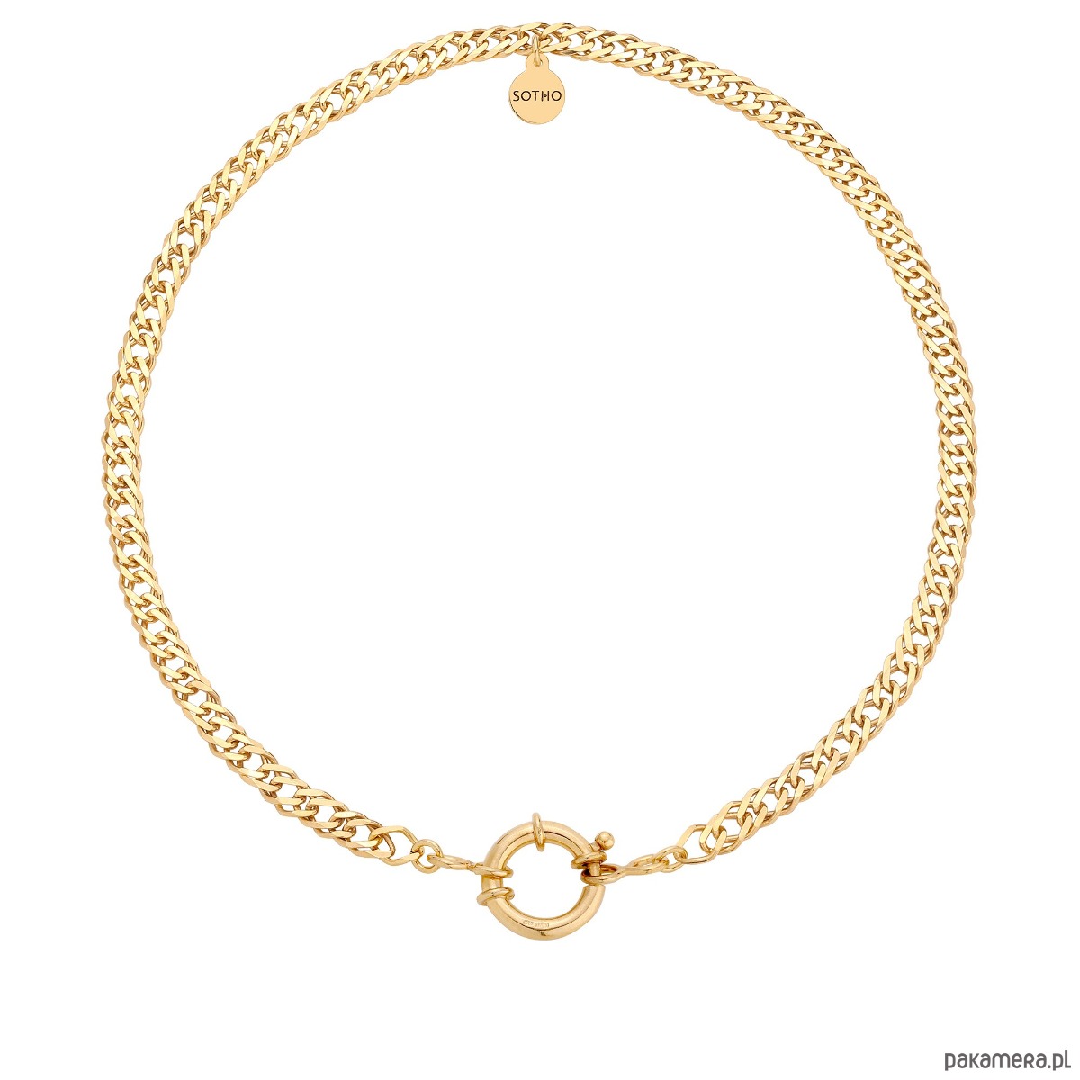 Złoty masywny łańcuch zdobiony zawieszką z logo marki. Całość wykonana ze srebra 925 powlekanego 24 karatowym żółtym złotem.