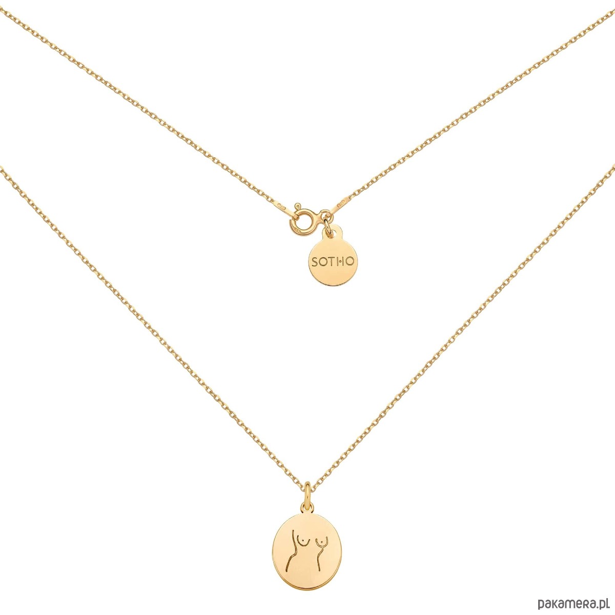 Złoty naszyjnik z medalionem Body N°3 i zawieszką z logo marki. Całość wykonana ze srebra 925 powlekanego 24 karatowym żółtym złotem.