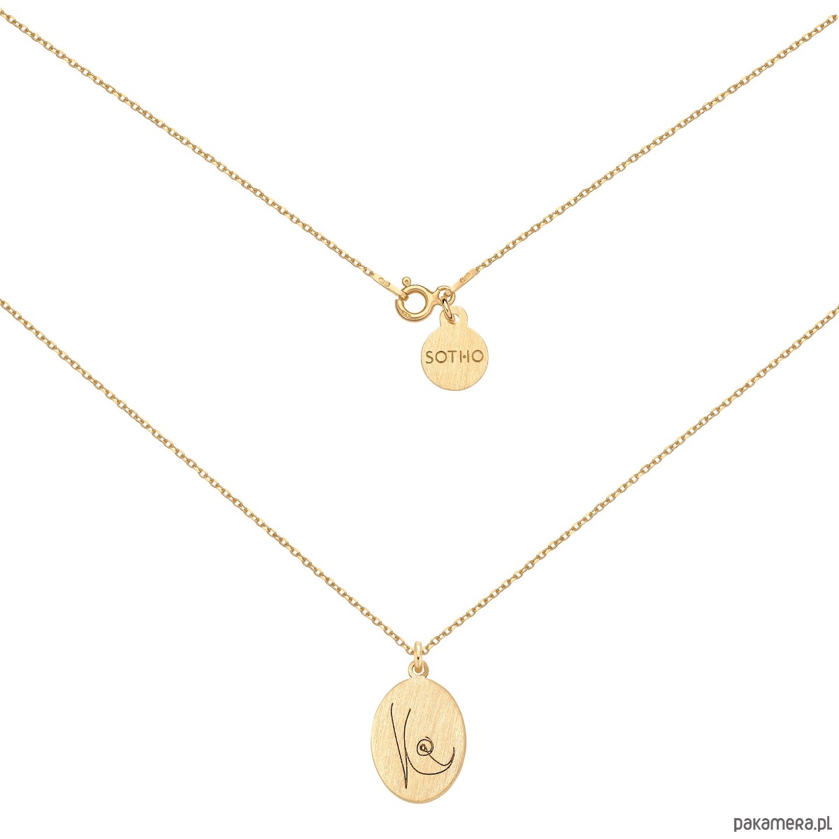 Złoty naszyjnik z matowym medalionem Body N°6 i zawieszką z logo marki. Całość wykonana ze srebra 925 powlekanego 24 karatowym żółtym złotem.