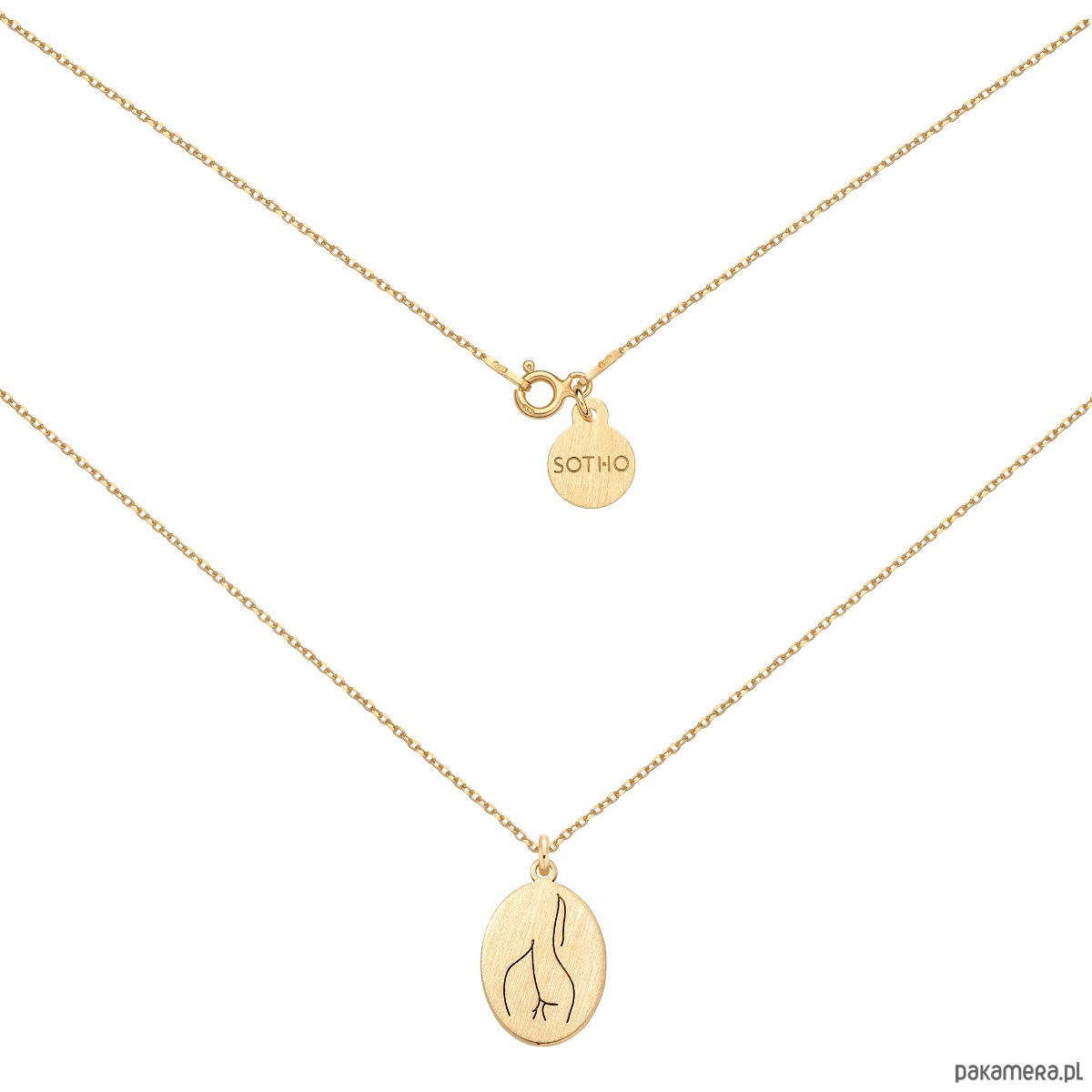 Złoty naszyjnik z matowym medalionem Body N°7 i zawieszką z logo marki. Całość wykonana ze srebra 925 powlekanego 24 karatowym żółtym złotem.