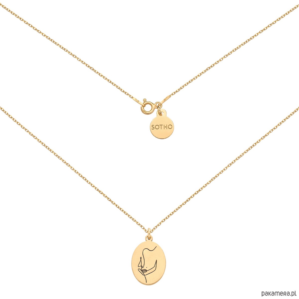 Złoty matowy medalion Face N°8 zawieszką z logo marki. Całość wykonana ze srebra 925 powlekanego 24 karatowym żółtym złotem.