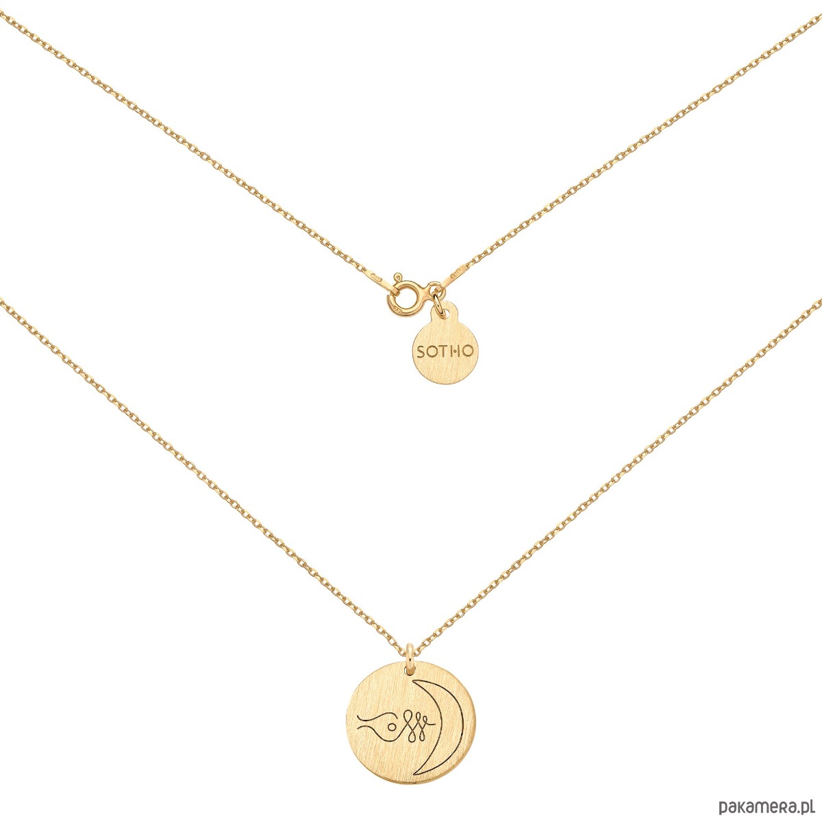 Złoty matowy medalion z symbolem serca i zawieszką z logo marki. Całość wykonana ze srebra 925 powlekanego 24 karatowym żółtym złotem.