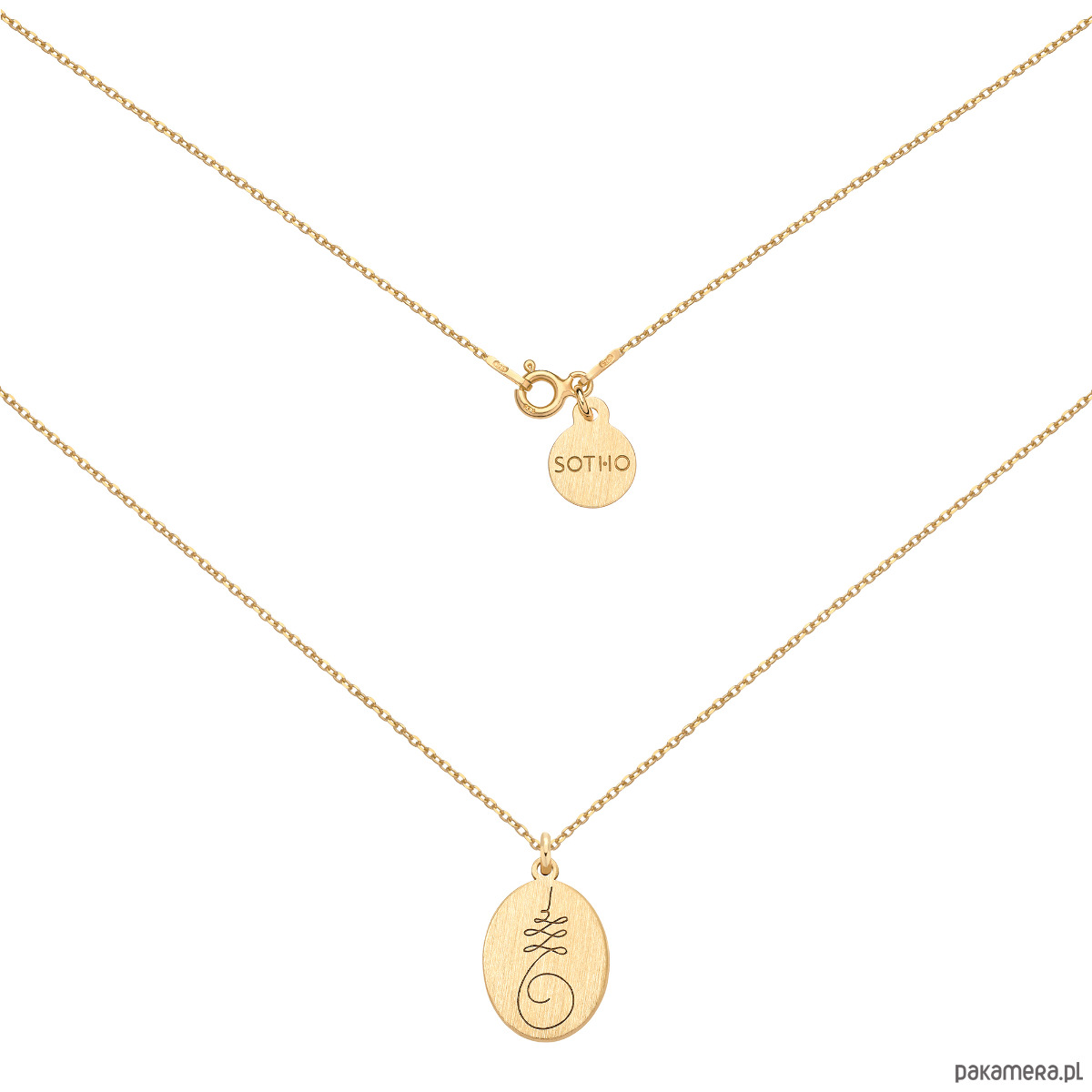 Złoty matowy medalion z symbolem Unalome i z zawieszką z logo marki. Całość wykonana ze srebra 925 powlekanego 24 karatowym żółtym złotem.