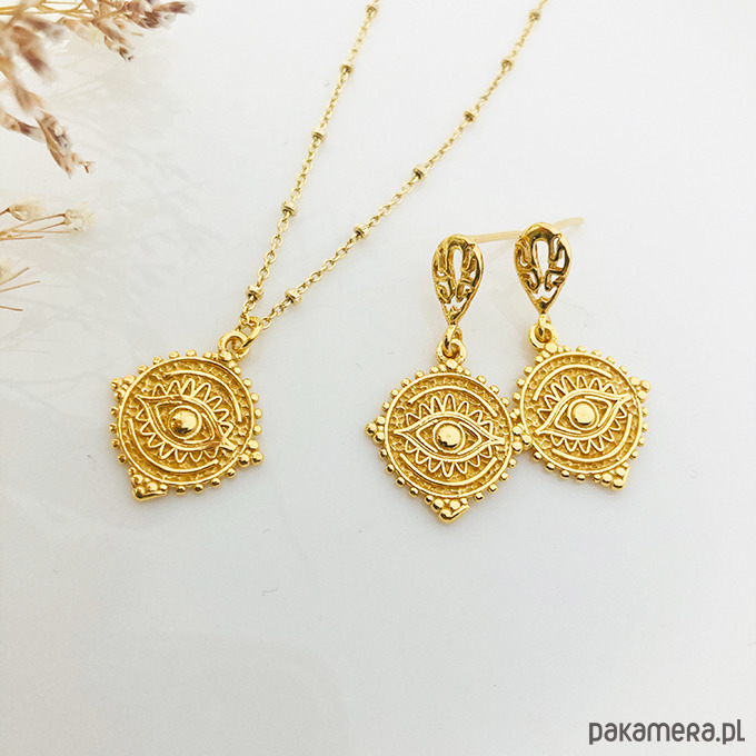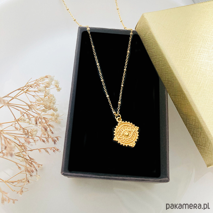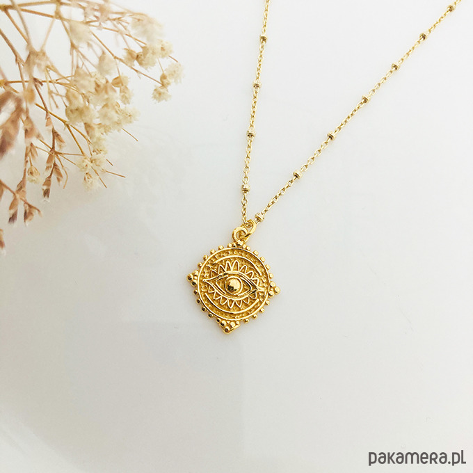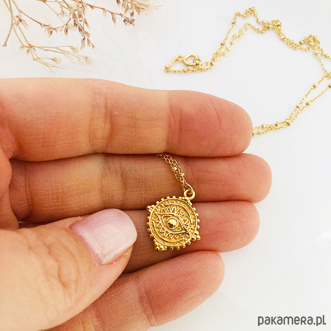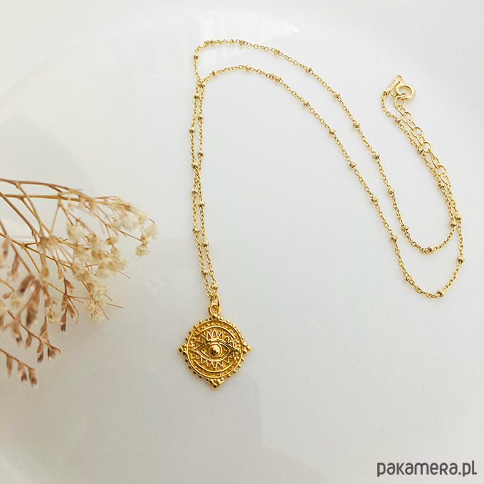 Efektowny naszyjnik z zawieszką w stylu boho na delikatnym kulkowym łańcuszku. Wykonany ze srebra próby 925 i złocony.