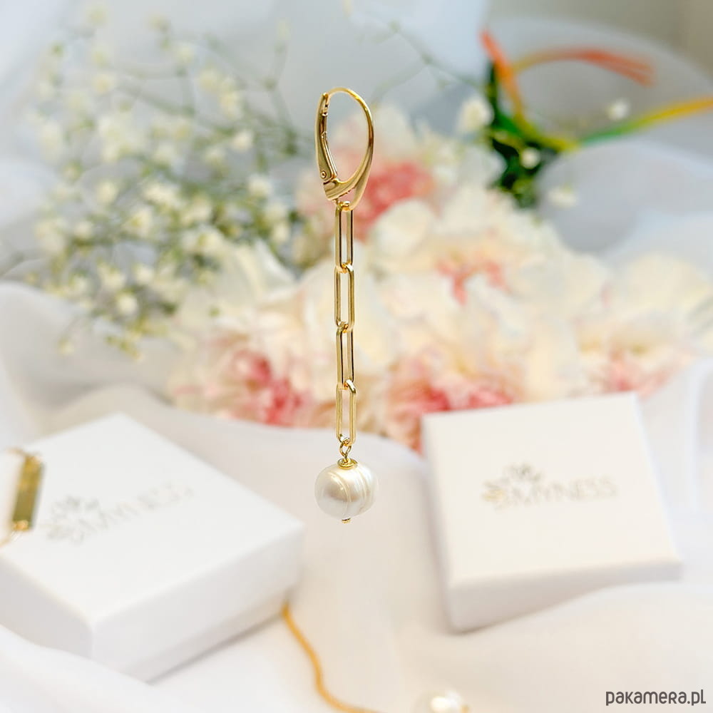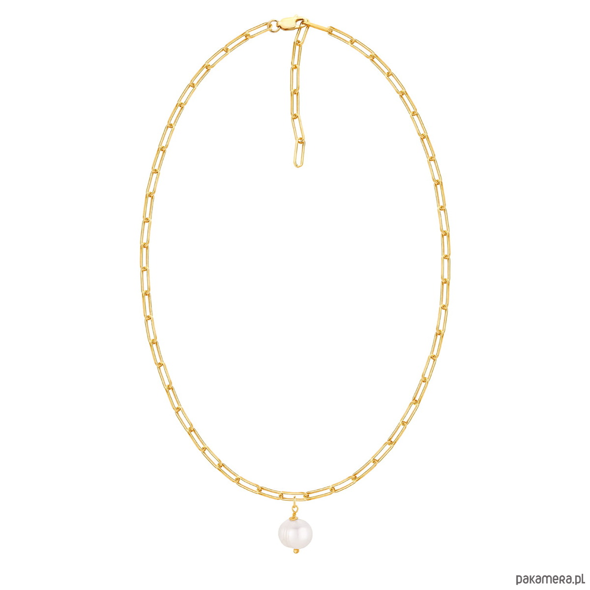 Złoty masywny naszyjnik, wykonany z łańcucha z dużymi ogniwkami. Model, który w ostatnim czasie stał się modowym hitem.Najmodniejszy w tym sezonie!Naszyjnik został w całości wykonany ze srebra próby 925 pozłacanego 24-karatowym złotem.Regulowana długość pozwala go nosić jako choker lub tradycyjny naszyjnik.Kamień naturalny: perła naturalna hodowlana, nieregularna 8 mmDługość: regulowana 36 do 46 cmWielkość ogniwek: 3,1 x 10,7 mmMetal szlachetny: srebro próby 925 (pozłacane)