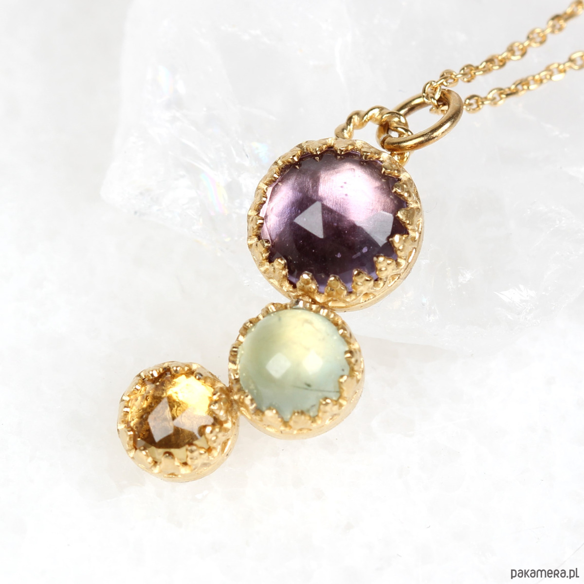 Złoty naszyjnik Dream z ametystem, prehnitem i cytrynem